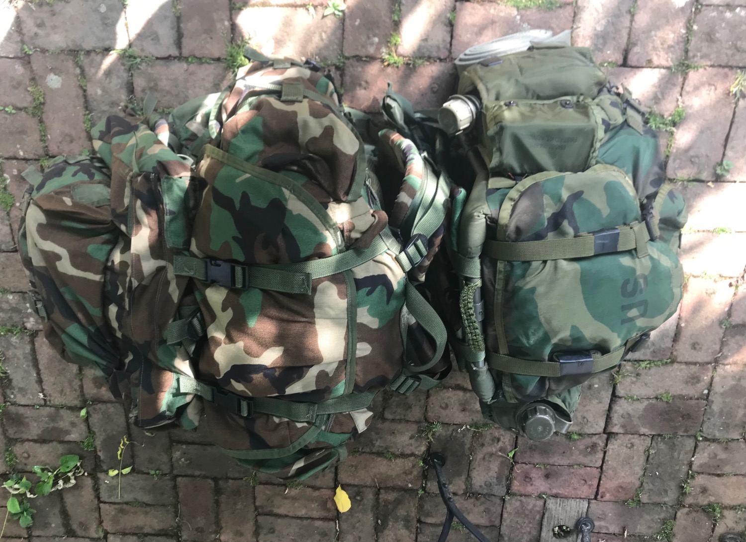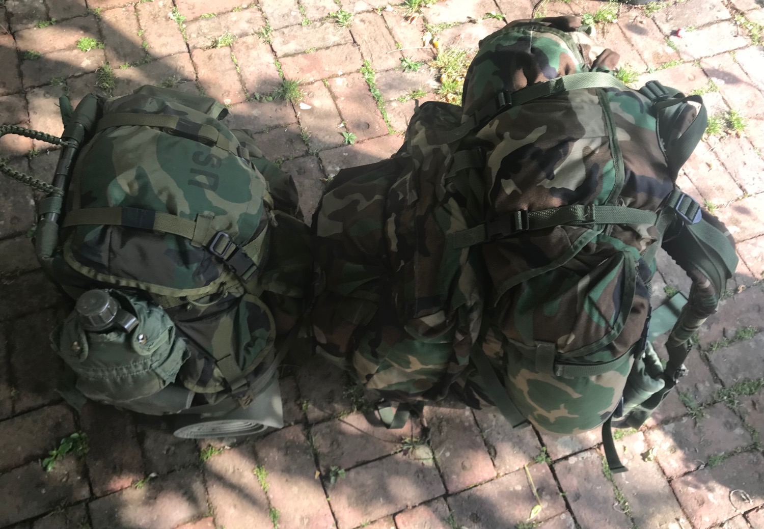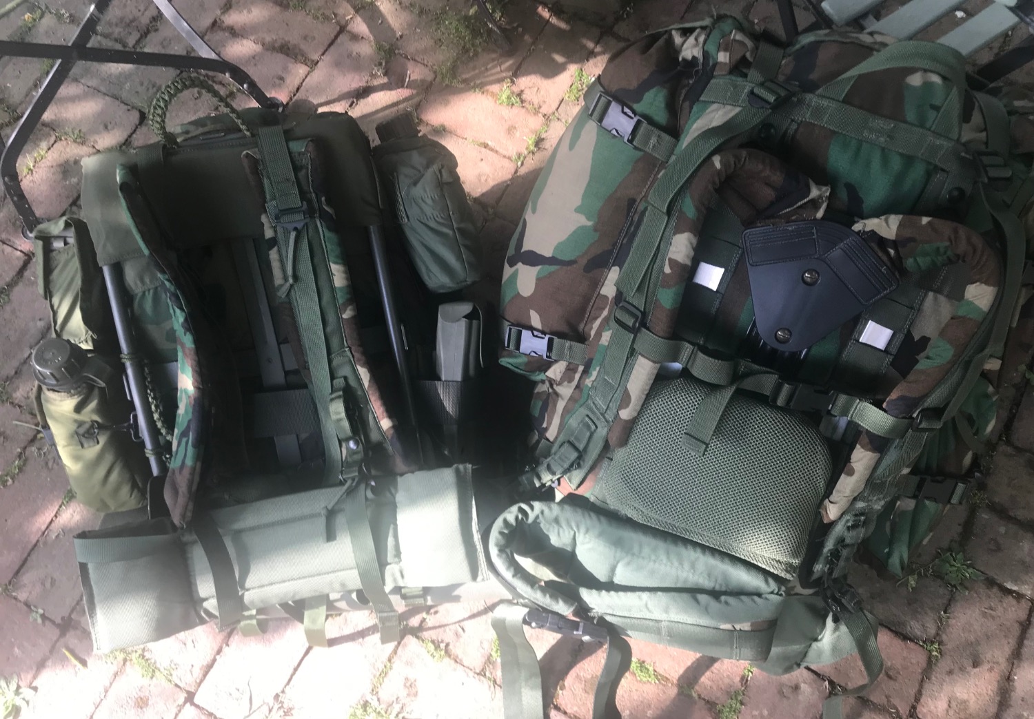 The CFP-90 Patrol pack. On the first generation of Lowe Alpine packs this was design to sit above the main bag lid. It tended to ride forward and push the wears head/helmet down. The main change on the gen two was to move “docked” position to the back. This is a simple frameless bag. As wide as it is deep with basic shoulder straps. Pretty much square and intended to sit above belt line. It has a draw cord on the outside to cinch the edge in a bit. The main pocket is zip closure with a double external flap. Inside has a slot with a thin foam pad and straps to hold a radio, antenna port on the left top. The outside pocket is big and will easy log hold several complete MRE packs or wet weather gear. It has a draw cord and buckle secured lid. The patrol pack is a very simple item and relatively, for a military bag, quite light. It does give you enough capacity for a day hike with guns.2 points -