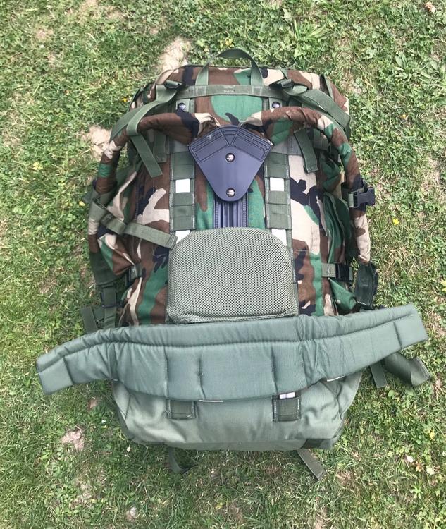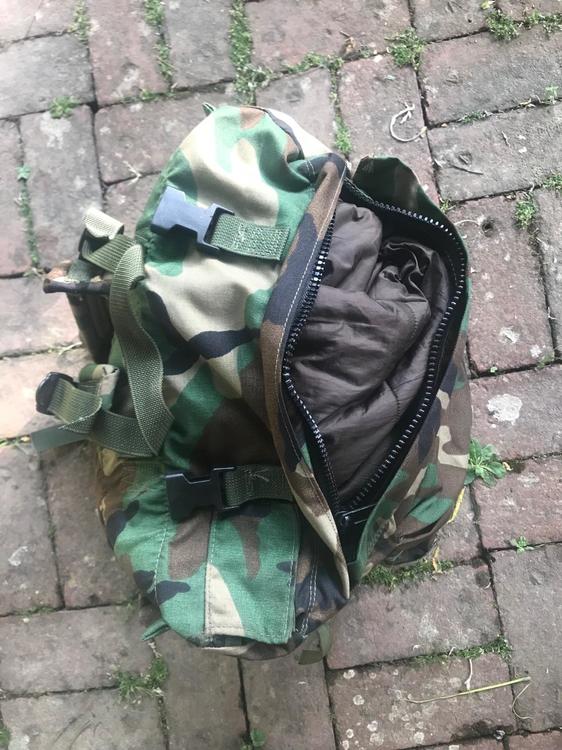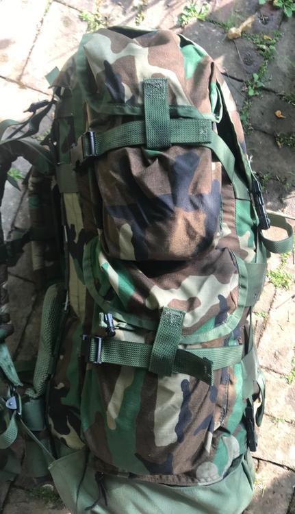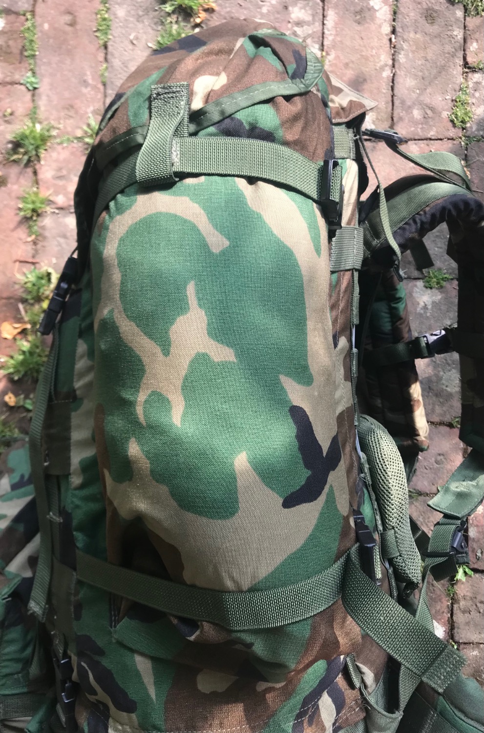 The CFP-90 Combat Field Pack 1990 (ish). This is the US issue “Bergen” for the end of the Cold War and part of the IIFS kit. My thanks to Messers Pie & Hatchet, of the legal firm Hatchet, Pie & Sausage. The back. Or the front. The other side but not the sides. The Carry Fucking Plenty is a two part pack system. The above is the main 110L, 70lbs+ capability main bag. The add on assault pack will be below. For scale the pack pictured is holding two full military winter sleeps uncompressed. This one is the Gen 2 Specialty Defense model and comes in ever fashionable US Woodland. Features: Ajustable back system with aluminium stays and padded hip and shoulder straps. A step up from the green tick but care is needed to avoid breaking the black plastic Y-yoke. Lower compartment extends up into the pack (the internal shelf can be opened) that will hold the full MSS. Main compartment with radio slot, snow collar and hydration/comms ports. Map pocket in lid. Pass through slots on the sides for skis/antenna’s/long thin things. Right hand side long sustainment pocket. Left hand side two shorter utility pouches. Empty in the photos above, full below. Drawcord and compression straps on these pockets. Three rows of ALICE/molle compatible webbing. And ice axe loops. The CFP-90 is a great pack. It never fully replaced ALICE and was eclipsed quite quickly by the first issue of molle. By all accounts a better carry than and Alice frame but not as modular as either it or the later molle offerings. Essentially it was retired for being too good. US troops just don’t TAB 100 miles with a ton of gear. They have cruise missies and helicopters.?2 points -