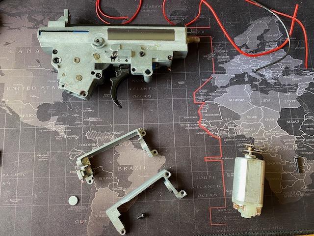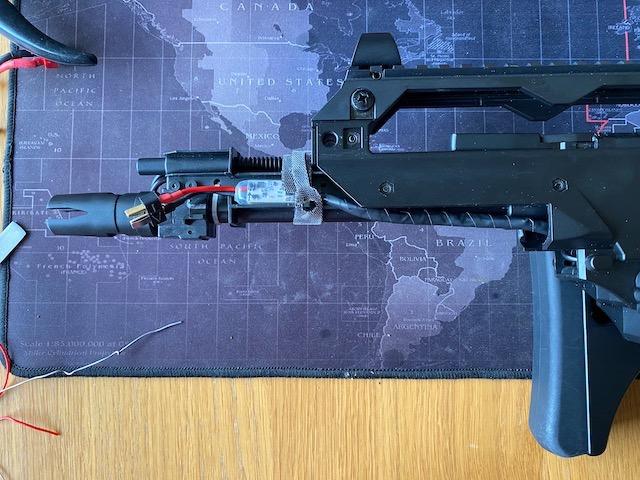 Bit of an update, had a couple of hours to myself this afternoon so set about installing the Perun and XT motor in the G36. Quick before video of how it fires stock: Stripped it down fairly easily, despite being a budget gun everything comes apart and goes back together again with a decent balance between being too tight or too loose. Remove the gearbox and stripped off the original wiring harness. Old motor out and new one in. Curiously I found whilst swapping the motors that there is a small metal disc at the bottom of the motor cage, presumably to shim the bottom of the motor. There is still a bit of a gap with the new motor installed, but it doesn't have any play once the cage is done up so have left it as is. I decided to leave pigtails from the old wiring harness to solder the trigger leads from the Perun onto. In theory this allowed me an easier time than trying to get the iron tip to the microswitch contacts, but in practice was a pain trying to mate the fine gauge wire for the trigger leads onto the original thick gauge pigtails I'd left behind. Worked out in the end, but if I did it again I'd probably just split the gear box, remove the microswitch and solder them directly to it. I spliced the trigger return lead close to the Perun so that I can get to it if I ever need to, don't expect it will ever fall off but easier to fix this way if it does: I left the harness long but the routing I've chosen in this picture actually makes it a real sod to attach the battery and get the hand-guard back on. I've since folded the extra length and tucked it into the cavity behind the mag-well so that you can just have the minimum amount of wire spare when refitting the hand-guard with the battery installed. Finally, the post install fire test. Much snappier and a decent increase in ROF. Perun is on default settings at the moment. I had a play with the precocking settings but noticed no difference. I'm not entirely sure how it achieves it anyway since there is no feedback from the gearbox on gear/piston position, I assume it measures current changes as the motor shifts from load to no load? I'll have to do some more research, but even as is it's an improvement. Hope the boy likes it.3 points -