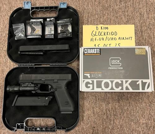For reluctant sale is my GHK Glock 17 Gen 5 MOS Cerekoted. This comes with the upgraded BFA steel slide, steel outer barrel and steel recoil spring from WCG shop and I have to say it’s the closest to the real steel than any other airsoft glock I’ve used. With the CO2 mag, the kickback is insane! Im selling as it’s been sat in a case and I just can justify keeping it anymore. Would rather someone have some fun with it. If you know Umarex GHK Glocks then you know that the stock trigger system is very strange and doesn’t pull well and sticks, unlike most Airsoft pistols. Thankfully this has the 4UANTUM trigger upgrade and performs much better with a crisper pull. It also has the 4UANTUM precision hop chamber and high performance bucking. Since I’ve owned it it’s only had around 20 mags put through it for target shooting. Internally it’s in near new condition. Externally it has a few light scratches from holster use. Included: - GHK G17 Gen 5 MOS - BFA Steel MOS Slide with steel mounting plate screws. - BFA steel outer barrel. - BFA steel recoil spring. -BFA steel RMR mounting plate. -Umarex CO2 mag. - Umarex GBB mag. - Original Slide kit with recoil spring. - 4UANTUM Custom Trigger. - 4UANTUN Precision Hop Chamber. -High performance bucking. -Glock case. - X300v clone torch with STROBE. I have the original box for this which is included in sale, has adaptors for different pistols. It’s had over £500 spent on it so I think £400 plus postage is a fair asking price. Happy to send additional pics and a video of the pistol. Pls ask. cheers for looking!400.00 GBP