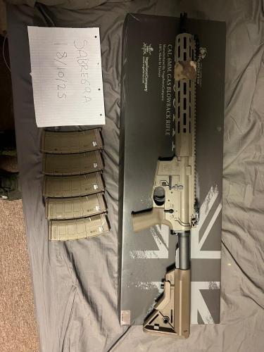 Having a morning playing around with toys. 1st purchased a couple of weeks ago, WE Apache MP5K. Lovely gun, spotless condition came with 5 mags to give me enough to field a whole game (with the other 3 I already have). Local site have opened an indoor CQB and I think this is the coolest way to play the game. I have added an e-shooter tracer unit for the full laser beam effect 2nd Completed the DMR upgrade to the LCT G3, maple leaf 6.02 510mm stainless barrel, 4uantum hop rubber and nub and m130 spring. Shooting 1.88J on .36 BB’s like a laser. Had the selector modified to only shoot semi. After a couple of games it decided to shoot only full auto? Modified the trigger contacts as it was arcing giving the full auto then it decided not to fire at all. Now fitted a e shooter mosfet to solve those problems and now it’s shooting very well with a very short trigger pull. Modernised with the LCT m lok handguard and an unknown fore grip from the box of parts, trying to make this monster easier to handle, might look at adding a small bipod to the front but not convinced it will get used and just add weight? Any thoughts? 3rd WE Apache MP5, modernised with a Cyma m lok handguard to keep it looking like the G3. Had to modify it with a hacksaw to make it fit, like the look and it gives me options for torches and tracers for CQB or fore grips for woodland.4 points