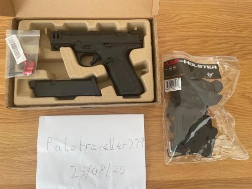 Updated price drop to £200 This price is WITHOUT optic. Thank you Tan staccato C2 Upgraded version (but has aluminium barrel some reason) Does have the steel hammer Aftermarket Steel thumb safety's Hand cut/thinned/stippled frame Matte slimtac staccato magwell Prototype real steel solar backup FHunter optic (Multi reticle circle dot/large viewing window) Sotac X300-B (steel screw) full SF trades Flat trigger (on the wall) Given it a 4mm short stroke (full slide lock functionality) Will send you a new and sealed maple leaf autobot. She deserves one. New condition (still has plastic protection wrapper on outer barrel) Offers on what's left Take care guys ? Postage £5.99 - PP:F&F200.00 GBP