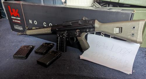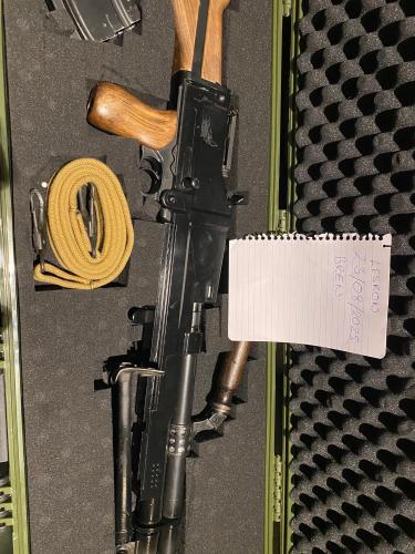 Stared life as ZB26 original Bren parts flash hinder front sights, gas block, pi pod, fully working carry handle, sling swivels , ( new sof sling ) magazine has ZB26 winding system fitted inside and breech has been modified to fit (790 BBs filled through small hole in top of mag ) Front sights 7.62 unfortunately couldn’t find 303 for love of money. Rear stock is plastic and wood printed far stronger than the ZB26 wooden effort Electonic trigger Case included Can’t remember fps is legal unlike when it turned up , think it’s had a better rubber fitted Will be looking for offers over £1200.1,200.00 GBP