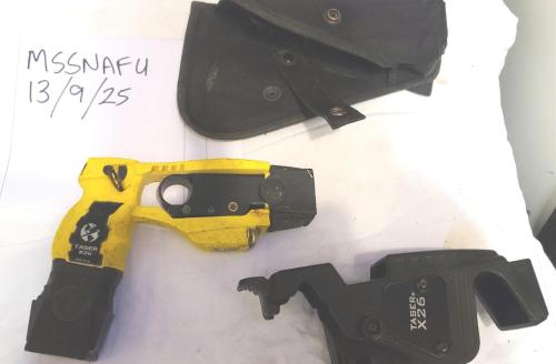 Originally this was a solid resin casting of an X26 Tazer, as used by HM Police, obtained from Etsy. (Its not a very good quality casting or paint job btw!) I bought it from a guy who was emigrating. Eventually I got around to modifying and hollowing out parts of it, so that my virtually unused little 24 BB lancher could fit into it. On red gas it will nearly send the shower out to about 5 metres, if you angle it up enough with the wind behind you 🙃. If you are able to sneak up on one, the look on the face of a player who hasn't seen it before when you shout 'Tazer! Tazer! Tazer!' at them, just before giving them a low velocity bb shower is priceless! 😄 I'm not really mobile enough to get the drop on someone any more, and like most BB launchers the range is pretty poor, so its time to pass it on. Someone with a Police or Security services build should be able to have a lot of fun with this 😁It comes with the two holsters pictured. A Taser is classed as a firearm and this is a realistic imitation, so the VCRA applies and a defence like UKARA is required before I will sell it to you. So if you don't have an easily verifiable defence please don't waste your time. Offers over £55.00 incluing p&p the lot. UK only and Paypal only. 20250913_132443.mp455.00 GBP
