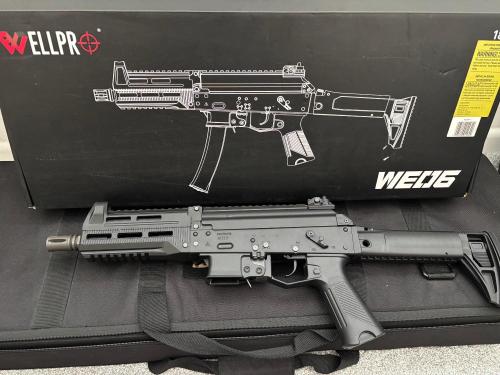 Well pro WE06 advanced version used handful of times, great rate of fire, very snappy due to DSG Completely standard out of the box. Good spec - Optical mosfet, tightbore, QC spring etc. Battery requirement: 11.1v with a 30c discharge. includes 2x 30/80rd magazines additional available. £10 each130.00 GBP
