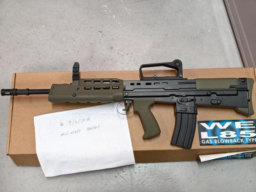 Lookie Lookie Listed below all broken down incl cost to buy new just so you can see how much of a bargain you can get. WE ScarL - £325 (milspec solutions) SRU bullpup kit - £120 (SRU) Viper vx sling - £20 (Amazon) T1 red dot - £30 (Amazon) Copy surefire m600 torch £40 (tango down) Toyko Marui pbs suppressor - can't find price closest is around £60 (eagle6) Will also come with all parts to convert back to basic scar L. Total cost new would be £595. It will need a new sear as semi auto doesn't work, I've knocked £100 off the cost to account for the purchase of a new trigger box. Even with the extra £100 off the cost at the standard 40% off due to it's age would be £297. I'm only asking for £250. Collected from Bolton. Postage can be arranged at cost. Swaps- yes preferred - Bolt m4 /416 Tm M4/416, Kwa erg m4 Splits - yes £250 Currently have a new stainless steel sear on the way, if you buy before it arrives from china I'll post that to you for free, if not I'll fix it myself and the the price will go up. I also have 3x mags available @ £20ea And a hpa adaptor for M4 mags @ £40.10.00 GBP