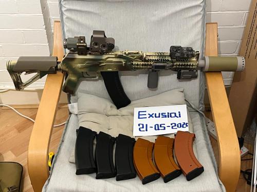 Posting this for @Exusiai. I'm currently keeping the gun on his behalf as he is taking a break from the sport For sale here is an LCT AK105 painted into Russian SSO camo in great conditions. Works all normally Comes with all the following accessories: 5KU Putnik tan silencer SOTAC Zenitco Perst 4 tan laser SOTAC Zenitco Klesch 2P tan flashlight with KV-1P pressure switch Repro Unity high riser rail Holy Worrior EOTech 558 Holo sight Holy Worrior EOTech G43 Magnifier 5KU Zenitco B31S Upper handguard rail 5KU Zenitco B30 Lower handguard rail 5KU Zenitco B33 Dust cover Repro Magpul RVG foregrip Repro Magpul MOE AK pistol grip AR stock converter Repro Magpul CTR stock with cheek riser 2x rail cover protector 7 mid cap mags Price includes PF48 postage Can split the kit however only if you want to take the gun520.00 GBP
