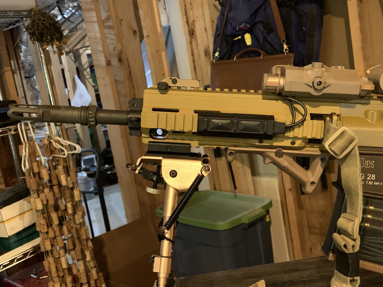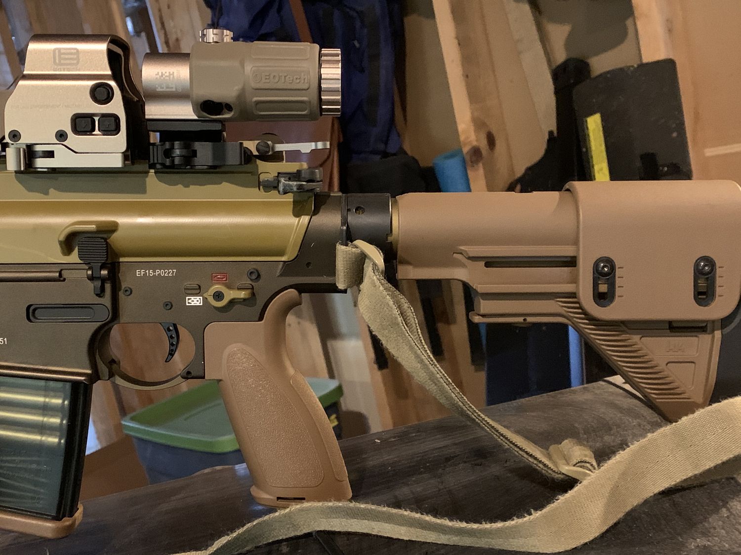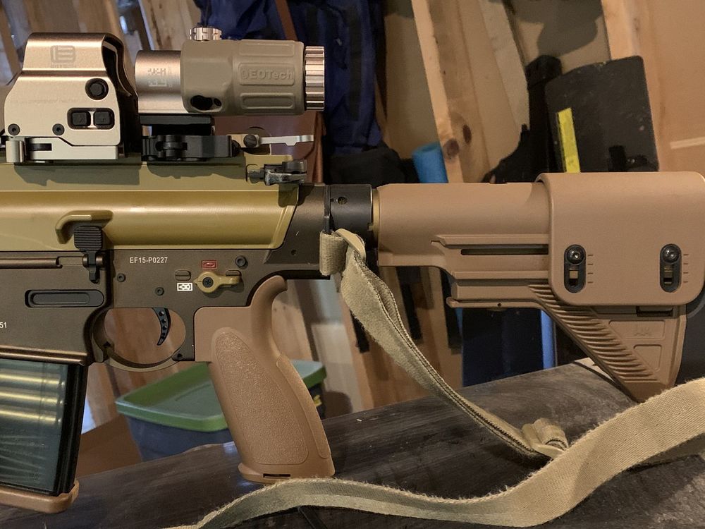 Well, thats another quarantine project done. Introducing the HK 417a2. It started life as two G28s; G28 LE #227 and G28 standard #IDontCareEnoughToCheck. #227 was my original G28 LE that Ive had for awhile, but it just kind of sat around as it was heavy, loud, and comparatively ineffective at range compared to my other DMRs. I wanted to upgrade it, but I wasn't sure what to do. Then comes the standard. I bought the standard off a secondhand airsoft app in November of 2019. It was a bastardization of a 417 and G28 - G28 receivers, grip, and outer barrel, but 417 buffer tube, stock, and rail. I didnt really care as it was dirt cheap and already had some decent upgrades in it. Turns out I should have cared, as not a month later the lower receiver cracked. Real bad. It may be repairable but itll be obvious. So I was left with a semi-upgraded but broken G417 and a stock G28 LE. Now, between these two I built a 417 for a mate. I believe I posted it here, but it involved making a custom fitting to mount a PTS UBR stock to it. I looks good, and works well. It also gave me some experience building 417s that I didn't have before, and it gave me an appreciation for the "Battle Rifle" class of weapon. Essentially, a BR is a carbine-length DMR. This would include short-barreled AR-10s, Scar mk17s, etc. In airsoft you follow rifleman rules. It just looks fancier. Around this time I started toying with the idea of creating my own BR, but in typical Spaz fashion it had to kind of stand out. Knowing how much of a pain VFC mk17s are to upgrade, I shied away from them, but 417s are expensive, with an approx $450 price tag. Add in the $500ish in internals I would have to do to field it and things weren't looking too good on that front either... Plus, there arent many aftermarket externals for the VFC 417s, and my squadmate already runs the one I built him. Then this broken G28 shows up and I had an idea... Until this year, I always preferred my guns having a dedicated setup. My M27 stays as it is, its sights are zeroed, I dont pull attachments from other guns, etc. However, with me recently turning my VFC Jag Arms PHX-15 SBR (see previous page) into a hybrid Krytac LMG with a second upper, I started thinking of doing the same with my G28 LE. I mean, if I built a lower based around trigger response why wouldn't it work in a DMR as well as a BR? So I began working on it. In this period I saw the news from SHOT that HK had revamped their 417 program into a new model - the HK 417a2. Shiny, new, not made in airsoft to date, and best of all - in RAL8000, just like my spare G28 receivers. So to begin I stripped the 417 sniper parts off the standard and sold them. No need for them, so why not. Ill make someone else happy. Bought a 417 short rail off someone selling one. Ordered a short outer barrel and gas impingement system from VFC. Started asking for quotes from various techs I trust on AEG gearboxes. Started looking into HPA as well, cause why not. Decided to go HPA as it'd be about the same cost, and more importantly, much quieter. Ordered a REVO kit from Italy (3D printed kit that allows the G28 to take aftermarket triggers, more HPA engines, standard M4 hops, and more). Ordered one of the new Wolverine Reaper Gen 2 Premium engines. Ordered a speed trigger, the internals needed to make the revo kit work, and an r-hopped barrel from the guy I always get my barrels from. Then it was onto externals. Ordered a fully trademarked Eotech XPS, G33 magnifier, KAC irons (closest I could find to gen 2 HK 417 irons - wasnt going to pay that much for the real thing - the rear sight alone is $300...), a Magpul AFG, a Surefire M600DF, and one of my signature blue-lasered PEQs. Rail arrived, and it sent it off with another project that will be unveiled here soon to be cerakoted in RAL8000. Rail returns, and most attachments come in. Decide I need a case, so pick up a Eylar 53in rifle case. Big, but i figured I'd need it. Case arrives, REVO kit arrives, Reaper arrives, bipod ordered and arrives. Install what I can, but Im still waiting for the order from VFC. Rest of the externals come in. Barrel from VFC finally arrived this morning, so in it went, gun went together, foam was plucked, and the HK 417a2/G28 project was complete. Now I can switch back and forth from G28 or 417a2 on the field depending on the role I want to play. The REVO kit also allows for full auto, so if the game allows it that is available. A fun project, a real head-turner (I hope), and it should have excellent range and accuracy. Im happy. Every part that should be is also trademarked, which really adds to the overall look.16 points -