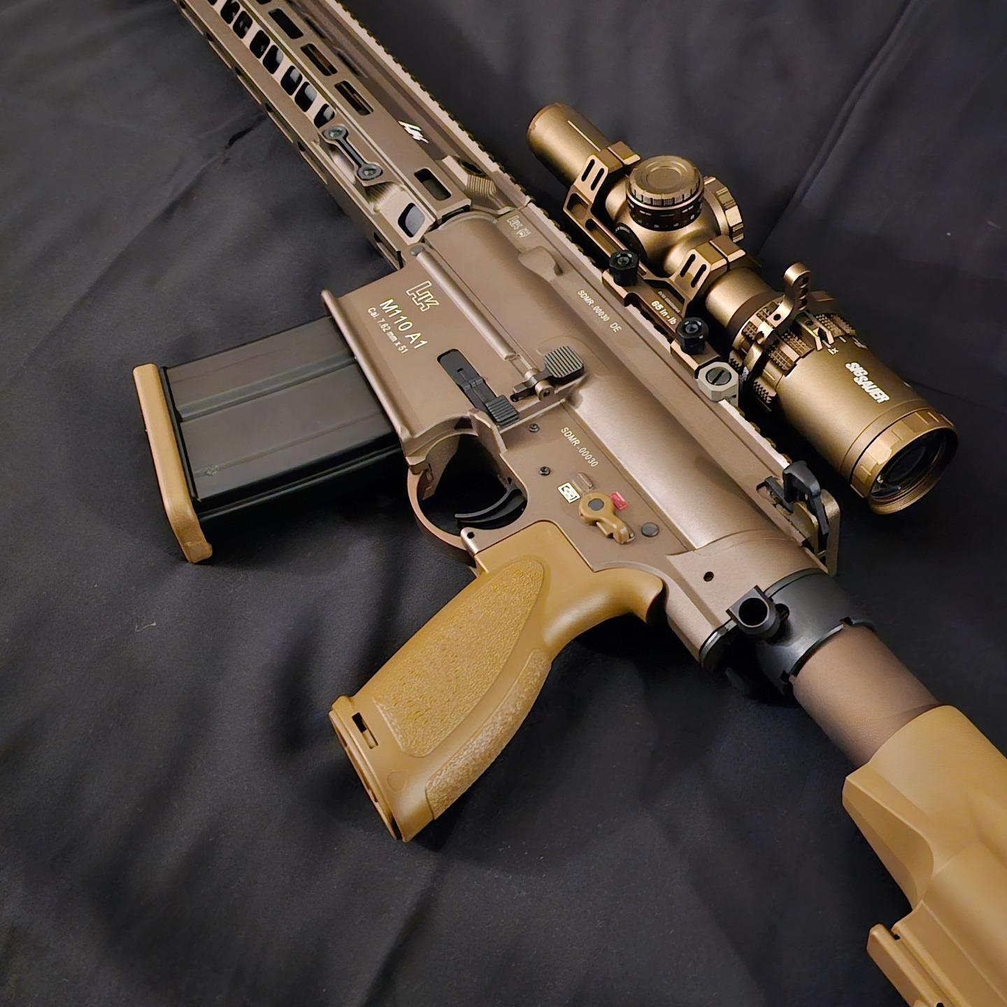 Having done up a replica G3 from an old TM version made from parts. I wanted a scope on it, but didn't just want an ordinary scope and didn't wanna pay for the scope that goes with the gun in the real world. Anyhoo, I started with a cheap 4x40 normal scope and cut it down. Emptied it out and put a bit of 30mm pipe on the back. I had a TM MP5 claw mount and cut the top off, filling any gaps in with milliput. A friend 3d printed some spacers and I glued them to the scope I was using. I glued various spare caps on and put a real G36 3x inner scope part to have some sort of sight picture through it. Sprayed up black and flip up end caps to finish. A bit later on I decided I wanted the more modern type lower that I'd seen with the German soldiers in Afghanistan. I used a cheap MP5 Navy lower and filled in the embossed bullet symbols. Sprayed it with bumper paint and drew on the selector markings. I bought a real selector lever from D&B Militaria and drilled a new hole to slot it right through to the other side. It may feel like a long winded way of making it but apart from the lower I already had and the selector which was only a couple of quid all it cost me was a bit of time.11 points