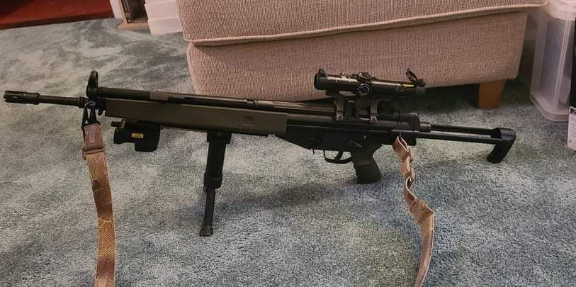We apache 30 round mags x4 Safakiland mls fork x3 Safakiland qls Zci 270mm tbb G&P 10" oiter barrel Noveskse low profile gab block Knock off ms3 sling L119a2 rail (arrived and was painted yesterday) -