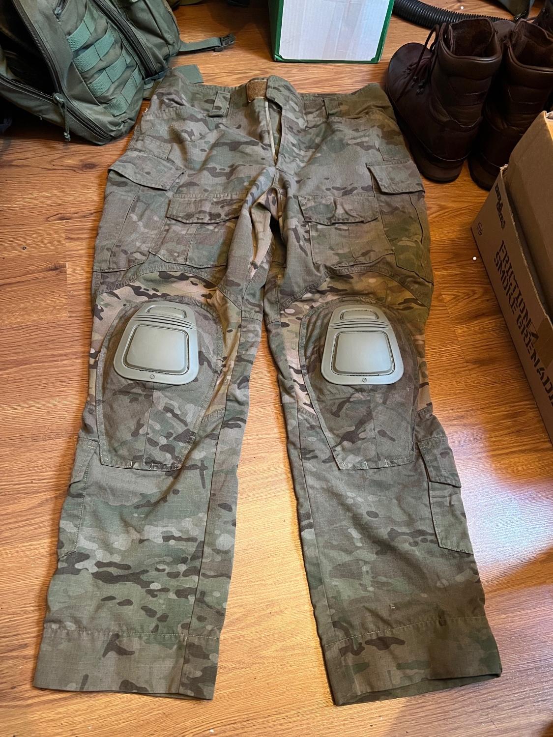 Thinking of selling these trousers not sure what to ask , they are Crye G3 trousers with the genuine knee pads , think they may have been dyed in the past as the multi cam pattern is darker than others I’ve looked at also the Velcro is a darker , they’ve been well used but plenty of life left in them