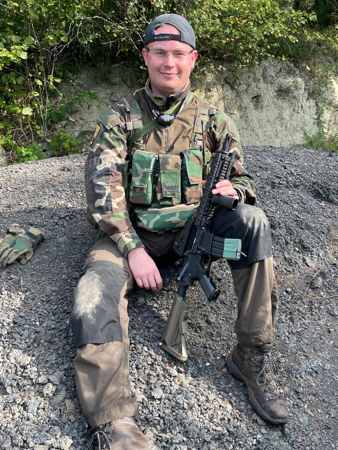As I’m an Ambulance Tech I carry a trauma kit with dressing, CAT tourniquet, gloves and pulse ox on my vest, with a standard FAK on my belt.
