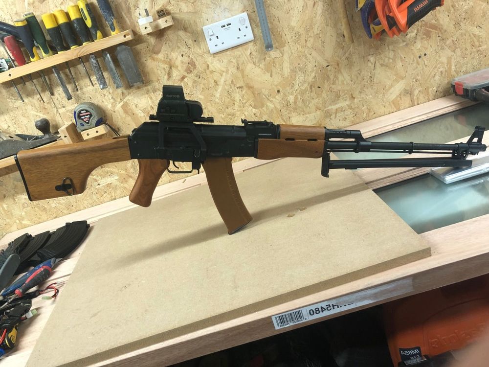 Here we have the evolution of my cheapie JG RPK bought off here from Hutt armouries few years ago. Iv had fun learning how to take this all part and work on it modernising it along the way. originally I was just going to replace the externals but straight away I could tell I’d need to upgrade the hop unit as the range was awful. things Iv replaced are JG Stock adaptor, LCT stock, CA upper and RS poly lower hand guard, pistol grip, LCT tactical selector, LCT drum magazine, TWI aluminium rails, combat union hop unit mapleaf macaron 50’ omega nub, CU air nozzle. I’ll upgrade the gearbox internals as and when they go. currently chrono’s 348-351 on 0.2s Lovely MG platform, lighter and more manoeuvrable than a belt fed.