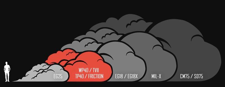 Most importantly let me declare my interests, that I am part of a sponsorship relationship with Enola Gaye (They provide the pyrotechnics for our events) I’ll categorise as smokes, bangs and ‘projectile bangs’ Smokes: Cover and effects In event running my interest is as an atmospheric effect and as an objective marker etc In game play it’s cover and/or a distraction The worst use is to take one standard smoke in a wide open area, throw it, look at it and then find that the cloud has dispersed with no body moving The beat use is to check the environment (is it windy?) and to either throw and go as soon as any smoke is produced or to throw multiple smokes dropped close by but with some spacing - then use the cover This brings the decision of whether to use larger smoke grenades for one cloud or multiple smaller smoke grenades to build a cloud Enola provide a guide to compare the capabilities across the range The general standard smoke across most manufacturers is Enolas WP40/TP40/friction and was traditionally set off by friction striker.* Each part of the range also has a designed burn time. In the above image the different models with the cloud in red have burn times mostly of 60 to 90 seconds but also includes the twin vent which emits smoke from both the bottom and top halving it’s contents burn time from 60 seconds to less than 30 The EG18 on release became popular for the bigger cloud over 90 seconds of burn and it also can ‘fit better’ in a manly hand giving a good weighty throw Some prefer the EG18, some prefer two standard smokes The EG25 is less of a cloud maker, but does get good results in small areas - this was more aimed for photography and effects Bangs: When I began playing these typically were only for noise, but gradually were taken into account in rules such as ‘within x metres’ is an elimination and of more relevance ‘within the room’ is an elimination Back then it was ‘normal’ to use Mk9s which meant that even if it didn’t count for any eliminations etc it caused players to react when a mk9 went off beside them Now the site standard tends to be Mk5s When on a ‘standard’ designed flash bang the mk 5/9 would be a guide to how much explosive is in there and how much of bang ‘volume’ you can expect experience, but the real science is in the combination of the chemistry of the bang and the shape/density of the grenade, such as how packed the cardboard tube is. This can change the volume and ‘feel’ of the bang - and have a significant difference in a confined space I was handed some of the compact bang to try out, and I stumbled when stepping away from the first one I ignited. In a semi confined area of an outdoor CQB space I felt a kick in my backside the of detonation ‘blast’ There is video footage, but I possess it and it’s not getting published For reusable bangs etc I have little experience other than those that I have watched in use. They cost more per grenade, but less per bang - provided you don’t lose it Projectile bangs: I have little to no experience of these, having used some of the early airsoft grenades and paintball grenades that ‘propelled’ either dried peas or paintballs when detonated. This was ten to fifteen years ago and I found them ineffective - let alone whether anyone took any notice of them In some cases the rules would count them as hits, but only if anyone took the hit Designs have improved over years but I’ve had no use for them nor have I been involved in their product testing. * Strikers/ring pull ignition: Enola have aimed towards using wire pulls due to the issue of players being heavy handed with strikers - the striker system has a chemical reaction between fuse and striker and only needs a gentle touch, over do it and you just sandpaper the top of the fuse away Pay attention to the instructions for ring pulls as to avoid players burning themselves on ignition EG designed ring pulls to be pulled sideways so that your hand is out of the way of ignition, and if you pull up it will deliberately fail. Due to the inability to read instructions (especially on the US market) a top pull system was also introduced - check which ignition system you have, and if you are heavy handed with ignition fuses carry a lighter (and only use it on the tip of the fuse) Further details on each in the Enola range linked here: https://enolagaye.com/general/ https://enolagaye.com/combat/ Other pyro manufacturers are available