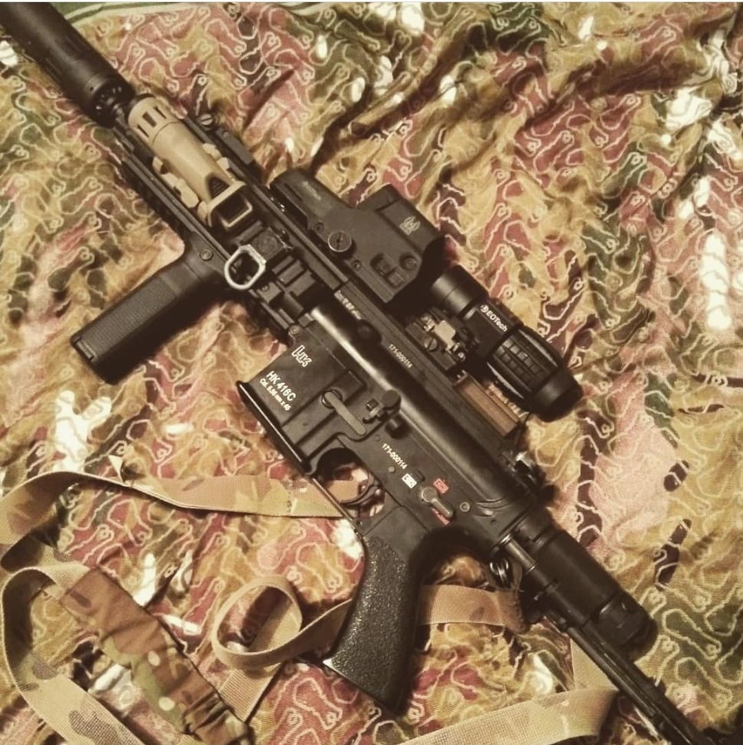 TM 416C EBB (with MOSFET), front wired to MagPul foregrip. 6 x 70rd TM magazines, 2 x 416C battery carryingTM magazines and 2 x PMAG type magazines.