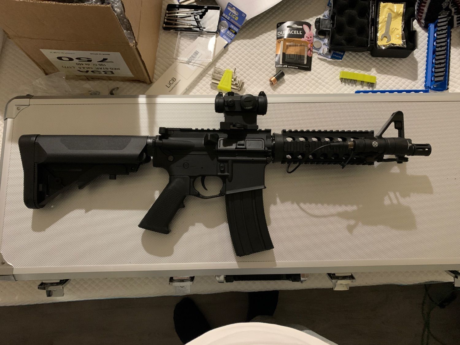 Hello all, I have only recently gotten into airsoft (played my first game on the 19th December 2021) but already hooked. my fiancé has bought me a gun already and since playing that first game I realised I needed a torch and better sight. so here is my work in progress. It’s a Bulldog M4PI RIS CQB with a M300a Tactical Torch & a FOCUHUNTER 2 MOA red dot sight. I know it’s not the best but everyone starts somewhere and this is mine. Planing to keep playing with this rifle for quite some time then invest in a different riffle after expecting everyone else’s on game days. I also completely forgot to order batteries too so have been able to set the sight up properly or test the light but it should all arrive Friday. So will update you all when I have chance to set it all up.