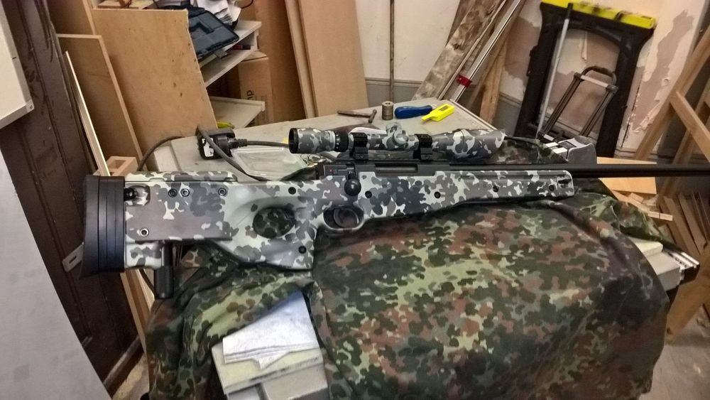 This is mine and my dad's speciality. The M4 pistol is a dsg build literally built out of spare parts and yet is somehow the most reliable out of all our guns despite shooting 50rps The AK bullpup is made from a boneyard SRC rpk, some bent aluminium and some cut up rails. The SCAR H is still unfinished but that was a VFC that I picked up second hand with a locked up gearbox. The L96 is a former two tone well that has had a mancraft kit installed