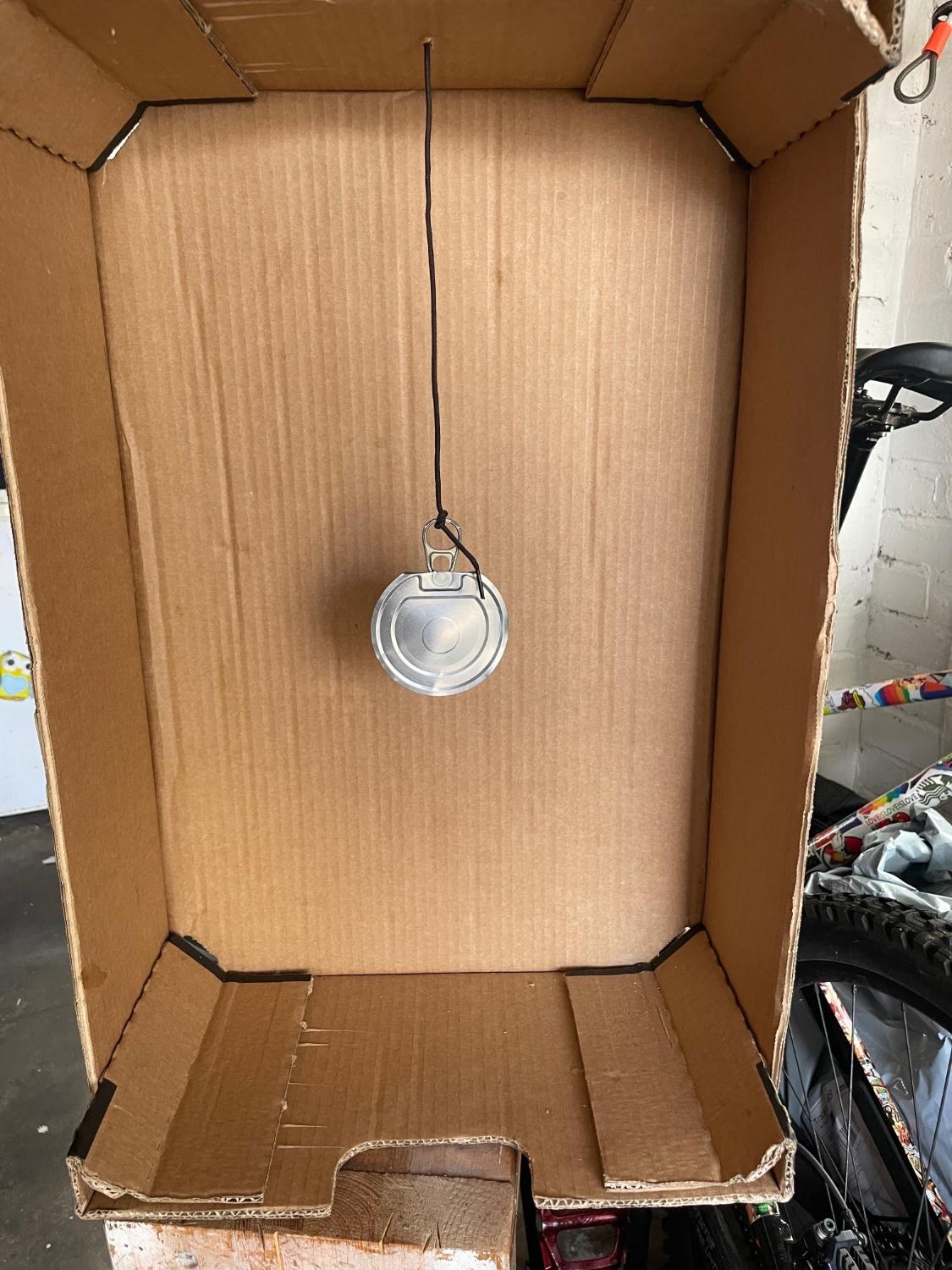 I like a wee garage pop when time allows. I get a robust cardboard box from the local supermarket and hang a bean tin lid from an old bit of wire. Can sometimes be a pain to maintain it "face on" if you use string but cheap and effective