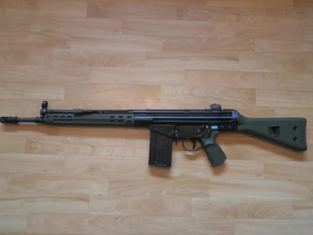 Ran mine again today, on CO2. First time with the NPAS in. I can wind that out a bit , was comfortably inside site limits. Also needed to adjust the hop a bit as it was overhopping the .30's I use in it. That could be the rubber bedded in now causing that I guess. I did drop it though, in the safe zone . 2 of us stood up at the same time back to back so didnt see each other and colided. One of those things. It did split the box mag though and broke the front sighte when it hit the ground. Box mag might glue, but I've got others. Ive ordered the DNA steel replacement front sight for it . One of those things and easily sorted. Performed amazingly as ever, rate of fire and range always surprise me every time I game it.