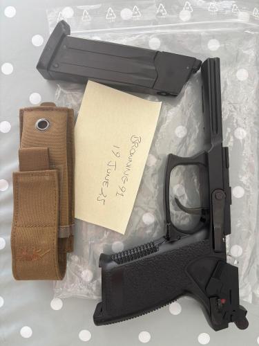 ASG MK23 frame 1 trigger arm damaged but still working/fires. - sold as spares/repairs - £10 ASG MK23 Mag - was leaking has been repaired professionally-SOLD ASG MK23 Barrel/hop assembly-New SOLD Tasmanian Tiger 9mm pouch in CB - £8 postage £4