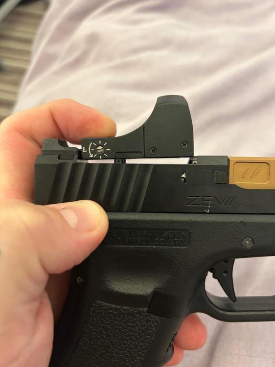 7. So long story short. bought this slide kit https://www.landwarriorairsoft.com/product/pts-syndicate-airsoft-zev-g17-prizefighter-slide-kit-for-leupold-dp-pro-10119 had it fitted by my local tech and shoots great, now time to fit a dot on her. so after double checking it has a Leupold delta footprint. bought this dot https://www.patrolbase.co.uk/novritsch-micro-red-dot-sight-v2 as it states fits Leupold delta. anyway. It’s just a tad too long and won’t fit to the slide, as zev iron sight is in the way. Any help would be much appreciated, plate adapter links, 3d print help, anything at this point or the dot will go back/sold and she’ll have to stay naked.