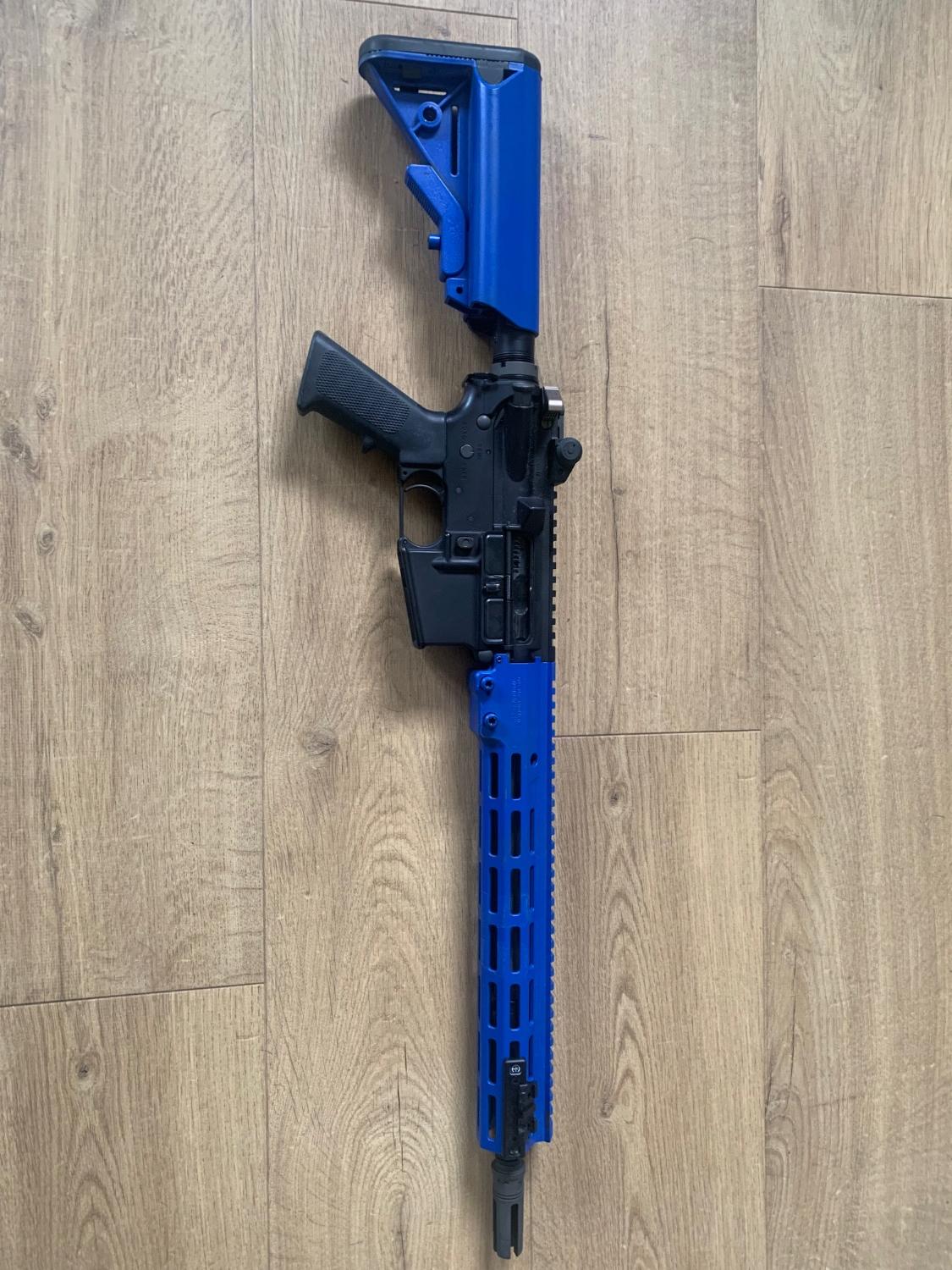 GHK 14.5” URG-I gbbr from Action Hobbies boneyard £300 . Nowt wrong with it apart from no mag and its blue . One hour with a toothbrush and cellulose thinners its looking better I’ll de-blue the crane stock when I have more time . also came with an odin mag adaptor . -