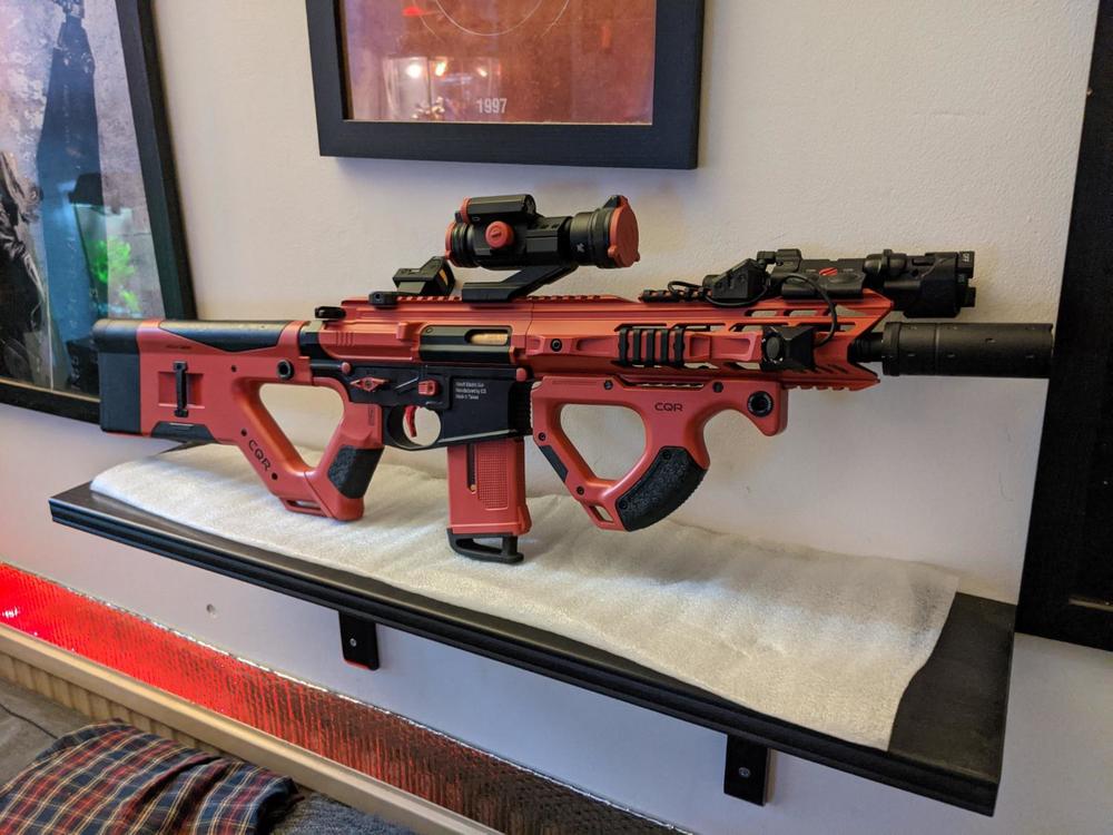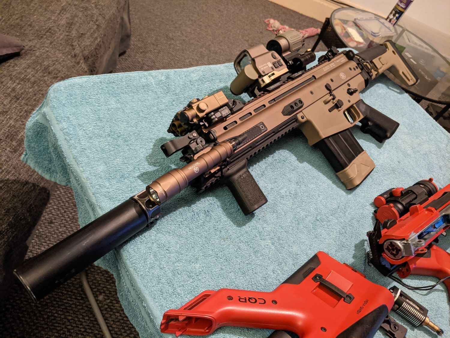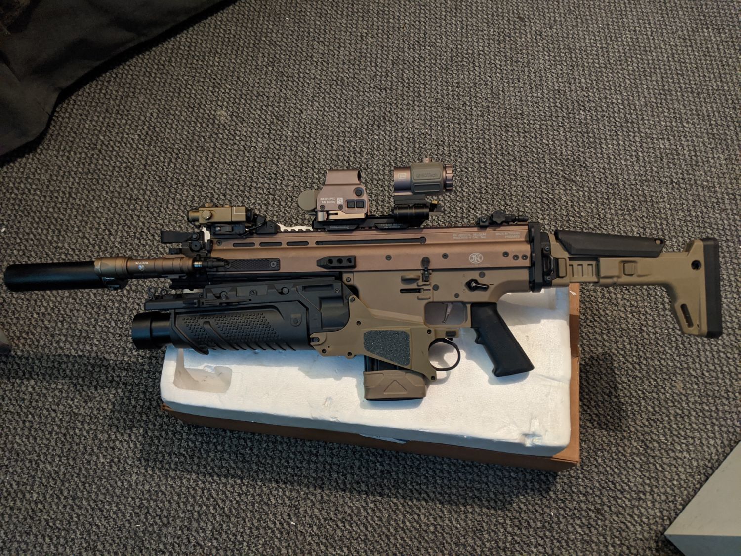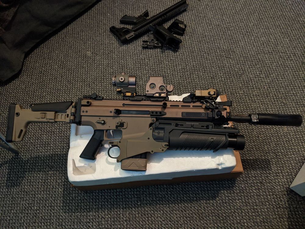 8. I'm waiting for warhead to get my motor back to me and I think I can finally call my SCAR-H 'Broadsword' complete. Real happy with how the two-toned stock came out, I had the cheekrest cerakoted black. (shout to Supreme Coatings) Just slapped the parts together because I wanted an up to date pic, grip is resting on a motor there..