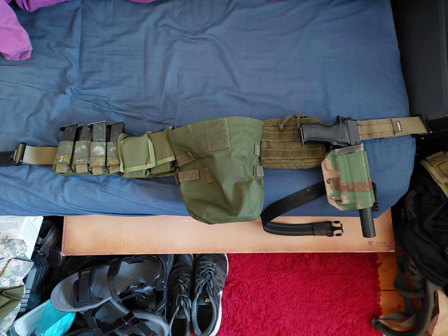 The stuff on it isn't new, but I figured I'd try one of these belt setups that velcro attaches onto a regular belt underneath. £20 on Aliexpress and so far I'm liking it. If I really like it, I may invest in a proper one, but for now this is fine and I will test it next weekend by using just it as a super lightweight setup. I should be able to carry everything I need for a game, but if not I can carry a small backpack with gas and BBs if needed. If anything I might remove the dump pouch if I don't end up using it. It isn't as scrunched together when it's actually on me, due to angles. -