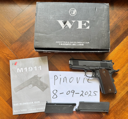 For sale is this WE-Tech 1911 Commander 1943 GBB pistol in excellent condition. Purchased for collection and only fired for testing. This model is based on the real Colt Commander, a lighter alternative to the M1911 pistol that would be issued to officers. Chrono at 270fps with no leaks. Comes with the following: - 1 x short mag - 1 x standard mag - The original box. Pistol: £70 Shipping & pp fee: £870.00 GBP