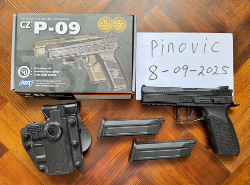 For sale is this ASG CZ P-09 GBB pistol in excellent condition. Bought it for collection and barely fried. Chrono at 303fps with no leaks. Comes with the following: - Swiss Arms universal holster, which costs £25 new https://www.justbbguns.co.uk/swiss-arms-adapt-x-universal-polymer-retention-pistol-holster/ - 2 x mags - The original box. Pistol: £70 Shipping & pp fee: £870.00 GBP