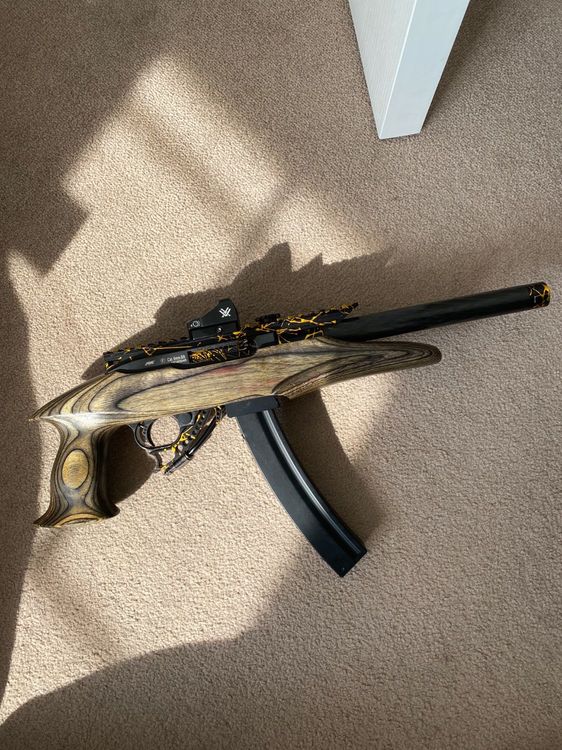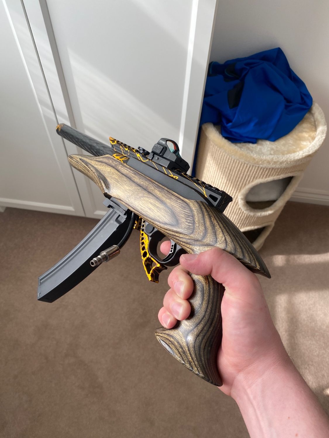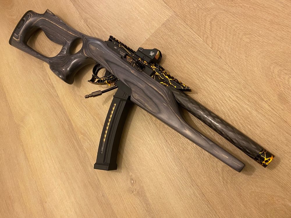 Saw a comment earlier on about how the A1 Raptor or the SSQ would be better than a stock KC02. For anyone that cares, this is nonsense because: •The Nov/A1A gun is made of the cheapest, heaviest and most brittle pot metal. There’s the leftover redundant front section from the A1A’s take down function, meaning the only thing that centres and retains the outer barrel assembly is the rail. •The “improved” tdc wheel has no tensioner. It’ll happily just adjust itself from the action of the bolt. •The A1A banana mags are infamously leaky, potential hand grenades. The KC02 mags are indestructible. •The Novristch team left behind several redundant parts from the A1A’s trigger box, one of these being the full auto sear. The split sear system in those full auto packs is terrible and I can see many of these guns refusing to fire in semi auto soon. • The roller bearing on the hammer is going to destroy the Chinesium bolt carrier on the SSQ22. Finally, the feedback I’ve had on the feel of the SSQ is that the quality of the plastics is comparable to a cheap Nerf gun. Stock KC = much better base gun for a build. If you’re curious about the Novristch, the sales section will be full of them soon. Rogueworx are designing a replacement hop unit and nozzle for this dumpster fire. Give it a year or so and the SSQ may be a good platform As a Brucey bonus for getting to the end of my wall of text, here are my own rather naughty KC02 builds. @Speedbird_666 Buy a KC, slap it in a Ruger stock and stand out as the guy with the all-American plinkster at your next game day