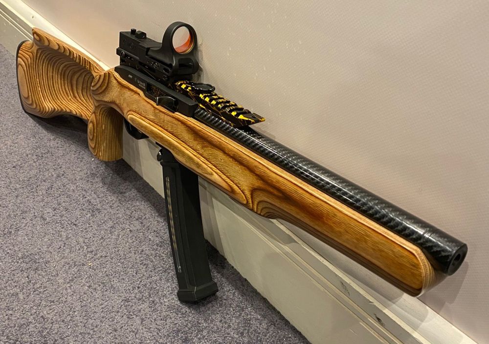 Here’s something that’s a bit of a work in progress. Got a ring pull style selector on the way that’s more in-keeping with what people seem to use on the actual MK4. A friend is printing a much lower profile mount for the Viper that’ll take it much closer to bore. Since concept, the goal has gone from MK4 Lite to MK4 target, so when I get all the upper elements Cerakoted to match; I’ll get some accurate trades lasered back on. The Ruger medallions will end up set in some wooden grips for a less “tactical” and more “old school plinkster” look Next headache is getting it site legal. There’s a 180mm barrel in there that’s currently delivering 1.5j in full auto… Going to try either restricting the nozzle or shimming the rocket valve to bring that down to 1.1 on temp appropriate propellant or HPA at 95psi