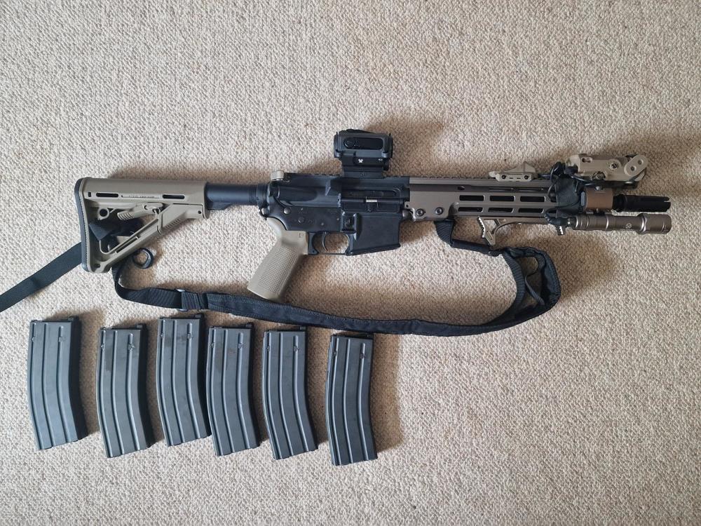 Externals - magpul ctr modified for NGRS by E6, vortex sparc ar in tan, wadsn NGAl, dual pressure switch and torch, magpul RVG, ascension research sling and nuprol tracer unit (not pictured)