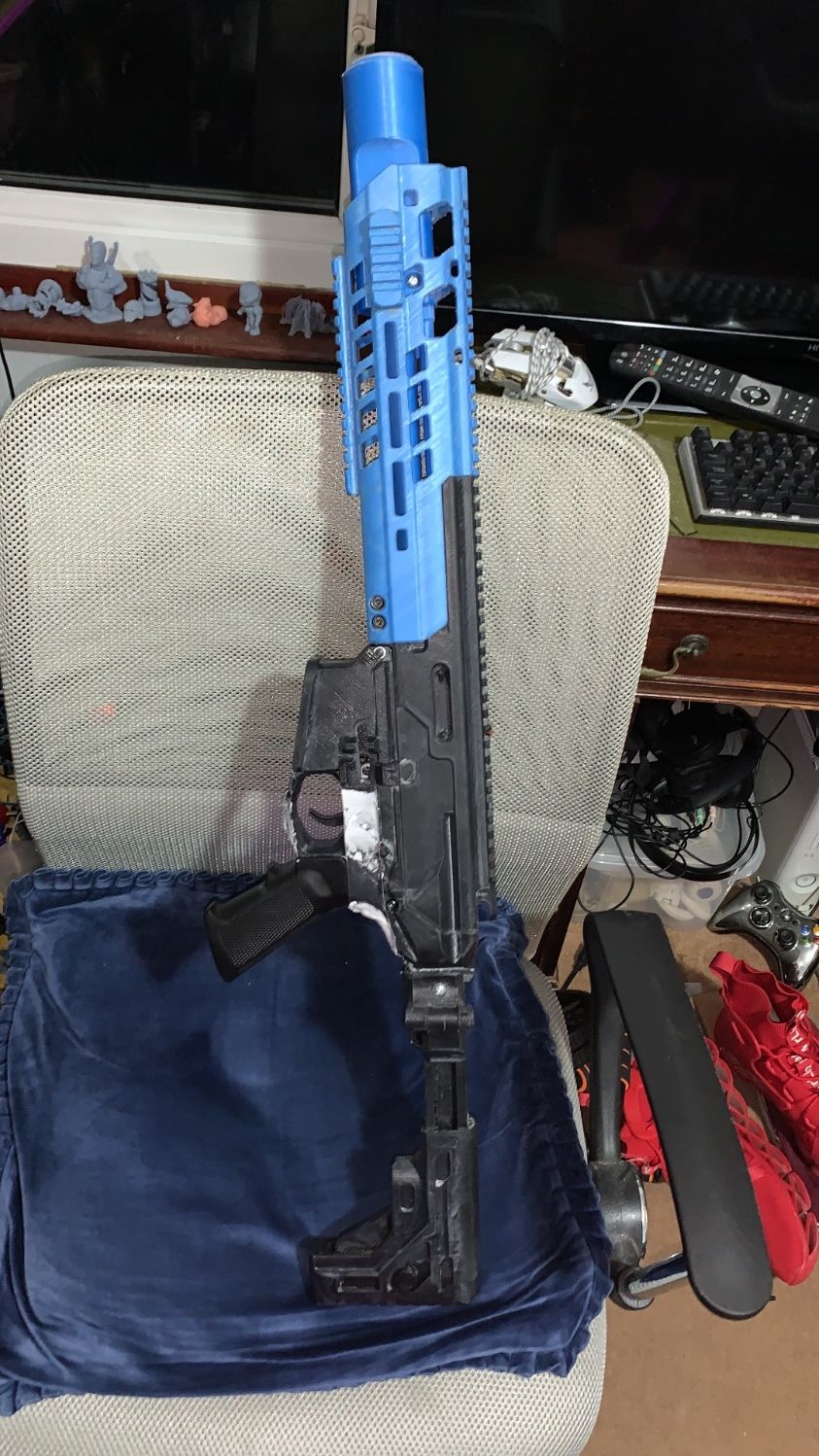 Been working on some project guns before I go back out on the fields about mid march! The mcx looking thing is almost fully 3d printed in carbon PLA and carbon PETG with a cyma plat gearbox
