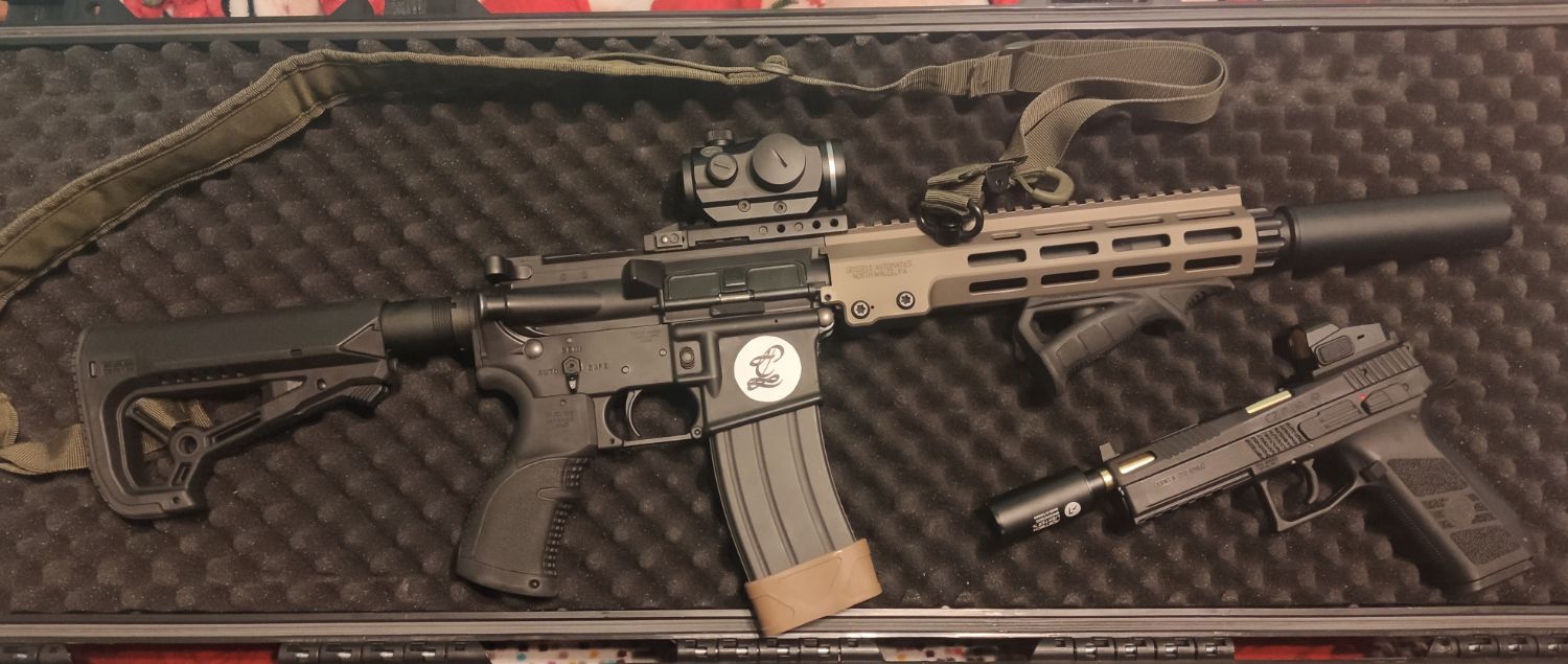 2. Hello, finally my baby is finished... in about ~90% External upgrades: - FAB Defence GL-CORE S stock - FAB Defence PTK-M front grip - FAB Defence AGR-43 pistol grip - HAO MK16 M-Lok 9.3" handguard - Revanchist ambi fire selector - FMA Specter suppressor with Acetech AR2000R module inside Internal upgrades: - EDGI Steel inner barrel 6,03mm/263mm - Maple Leaf MR 60 - Maple Leaf omega nub - Dynamic Precision Reinforced Aluminum Valve Blocker - G&P Marui MWS Aluminum Buffer V2 - G&P CNC Adjustable Power Nozzle Valve( Level 2 ) ( 4.0 ) - G&P Marui MWS Roller Bolt - Dynamic Precision Enhanced Sealing Buffer Future upgrades: - Ambi mag release - Ambi charging handle - Magpul BAD lever - Magpul or SI Cobra trigger guard - two stage trigger And I have a question to G&P Nozzle Valve ( 4.0 ) users. What fps/joules you have on max settings? At least I think is max settings... A screw should be all inside the nozzle right? Because I have only ~310fps/1,24J on 0,28g it's just a little above 350fps(0,2g) using Nuprol 2.0 green gas. I was hoping that at least ~450fps/1,8J(0,2g) would be drawn ?. Maybe I messed up sth during re-assembling?