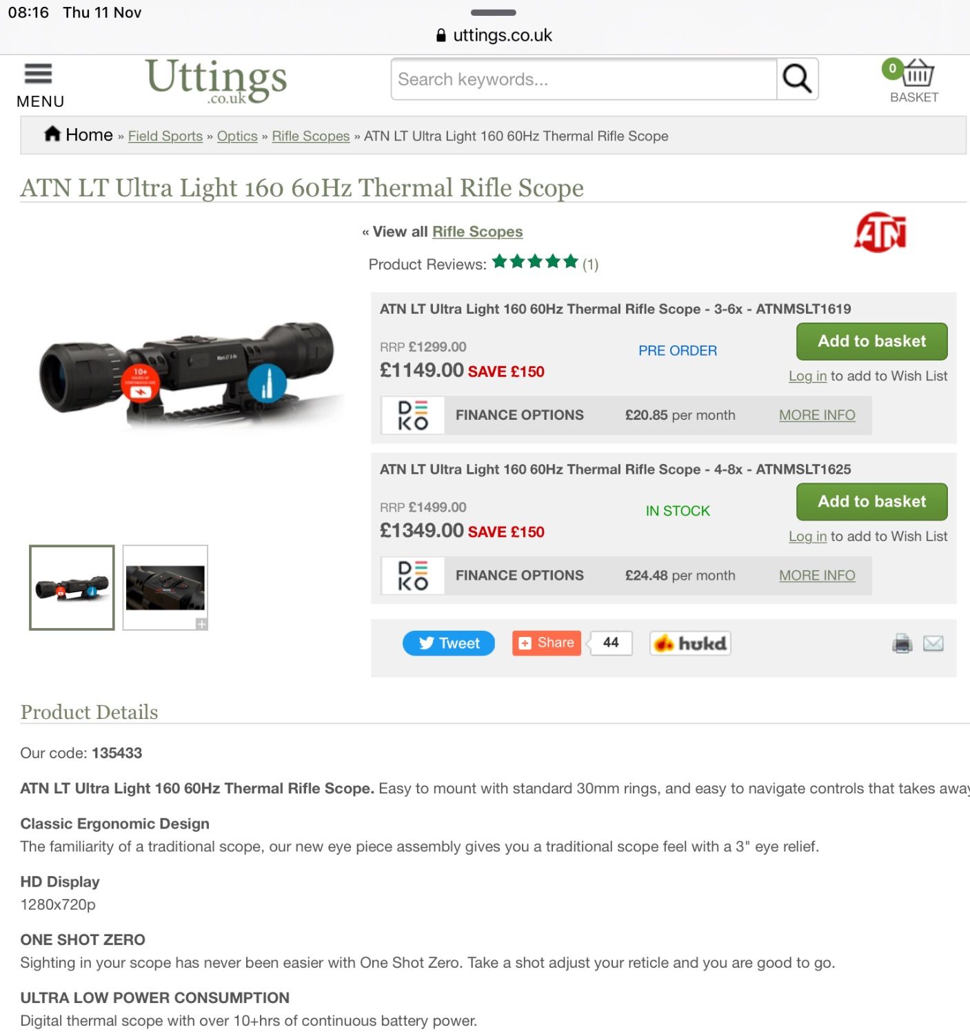 I recently watched this video and it was one of the first videos regarding airsoft I’d watched strangely and although it’s probably not very practical or maybe the purist way to play Airsoft during the day at night will be great! I just looked at it and fell in love with the fact I could mount a thermal scope to a rifle and just fire the thing! Leopold Tracker This device is now discontinued and it sounds like it’s not actually very safe to be using on the scope plus you have to wonder if there’s some kind of quality control issues since they discontinued. With some real effort I could probably get one from eBay USA but perhaps there’s better options out there? Some have said that if they didn’t have the Leopold device they would have bought this instead, not sure how that works as you can’t use it as a scope really because your eye has to be right up against it unlike a scope? Nice device still though. https://www.uttings.co.uk/p123987-flir-scout-tk-compact-thermal-imaging-monocular-green-431-0012-21-00s/#.YYpXBC3fXmo A similar cheaper option and also some good feedback on https://www.uttings.co.uk/p134258-hik-vision-lynx-6mm-160x120-thermal-imager-hikvul6/#.YYpWSi3fXmo One chap from this forum has recommended this one to me but slightly expensive still INFIRAY SAIM THERMAL RIFLESCOPE SCP19 https://www.uttings.co.uk/p135902-infiray-saim-scp19-thermal-256x192-scope-3-4-6x-19mm-lens-irayscp19/#.YYpanS3fXmo I’ve dropped a photo in also, here with the Leopold d3vice you can tweak the heat maps and have the orange over white which is really interesting, not sure the others can do that. Anyone have any of these or similar, what’s the experience like?