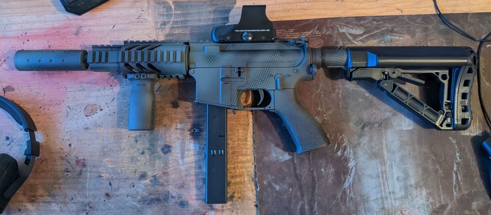4. Gonna give these two a whirl next weekend, new cm.045 and just got the m4 back from negative airsoft who de-shitified it, both freshly painted and more importantly s h o r t. Excuse the state of my desk, miniature painting is my other hobby.