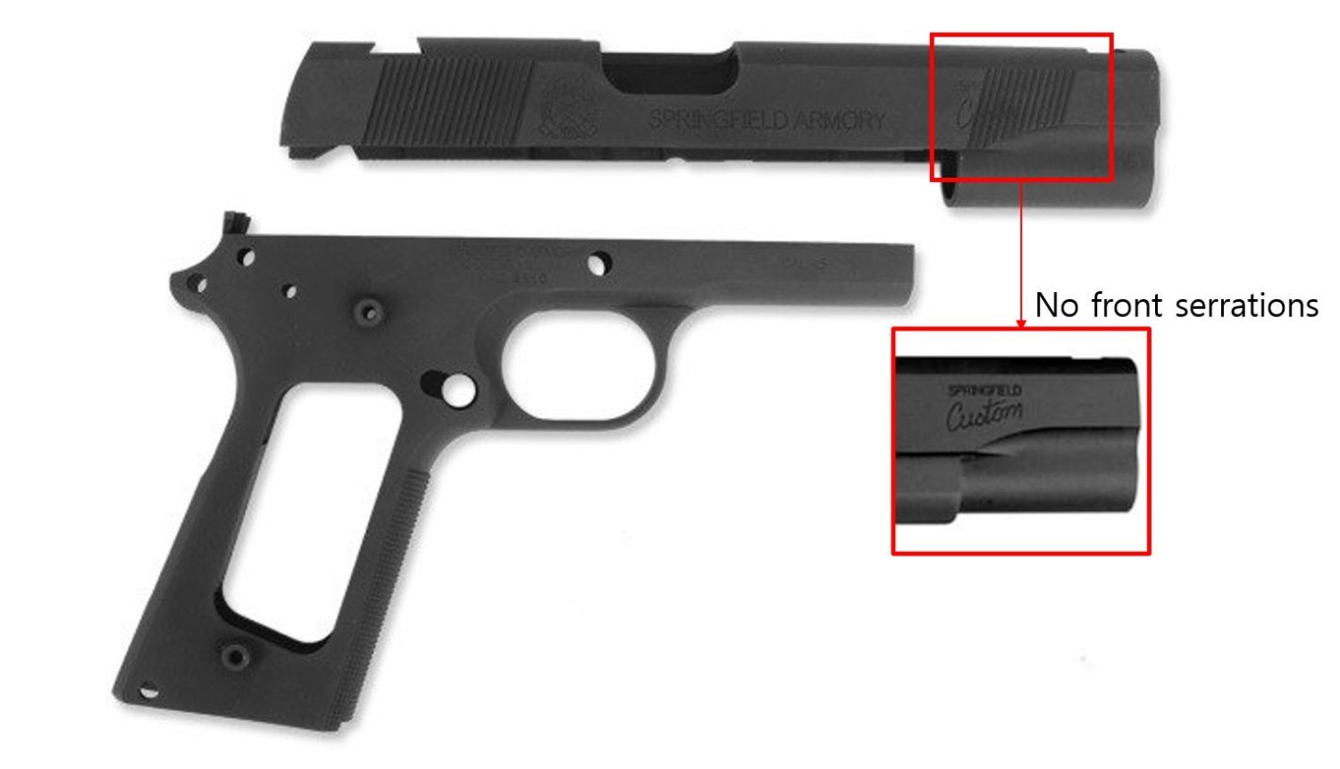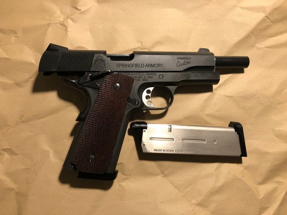 3. Took almost a year and a lot of planning to source everything, but finally finished my grail build - the Springfield Armory Professional ---------------------------------------------- Fun fact : The late-model versions of the MEU such as the Tokyo Marui or Guarder replicas are based on this version of the 1911. The USMC took base model Springfield Professional models and modified it to fit their own requirements. These included things such as adding the lanyard loop and forward slide serrations. The photo below of an actual MEU pistol shows how the slide sports the forward serrations added by the USMC's armorers, which was cut over the "custom shop" lettering from the Springfield factory. Another interesting thing is that the slide and frame seem to be a different color. This was because the frame was the original "Black-T" finish from the factory, while the slide was refinished/parkerized after cutting the front slide serrations. I really wanted the original professional model (RS example, left), but the only similar option available without the front slide serrations was the Guarder Bureau model (RS example, right). They both are essentially the same gun, but the latter was a marketing ploy by Springfield after they won the contract for the FBI HRT's sidearm. They slathered a bunch of FBI lettering and even used FBI in the serial numbers to really let you know this was a cool gun chosen by the FBI. After about 40 or so of these were manufactured and sold as the "Bureau Model" the FBI put a hard stop for their name being used in branding. Due to this, these were extremely rare, and the RS ones can go for 5,000+ USD; I assume that Guarder chose to produce the Bureau Model instead of the bare-bones Professional due to this rarity and backstory. But still, I really wanted the original model since both the USMC's MEU and the FBI's "Bureau Model" both were based on the Professional. Which brings us back to the fun fact in the first photo: The MEU is the Professional model, with forward serrations added - This gave me an idea. If the forward serrations were skipped from being added on Guarder's MEU slide, it would be exactly what I wanted. So I pitched this idea to Guarder, with fingers crossed that they would accept something like this. And by some miracle, they accepted to do the custom order! And here it is! The only airsoft SFA professional. It was such a long project to complete I now can't exactly remember why I wanted a Professional in the first place, but extremely happy on how it came out. Everything is correct to original Pro model specs, but I never could source the magwell.. Any SOA fans out there? While researching for this project I found that Jax teller's main sidearm was also a Professional