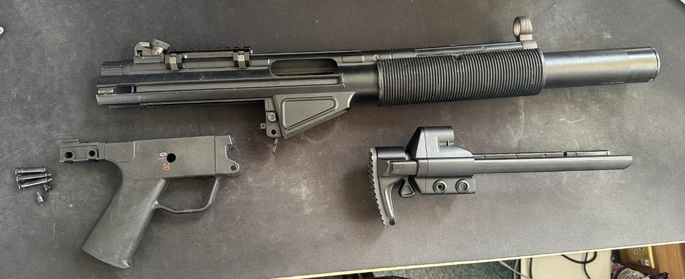 Hi folks, looking to move on my G3 SBS. I had this complete but recently took the gearbox out for another project. this left the externals sat around doing nothing. Consists of; G&G magnesium upper (modified with removal of material internally to accommodate front wiring) G&G navy lower JG retracting stock JG/cyma (can’t recall) mp5 SD front end. TM g3 hop unit. i have the g3 gas tube & charging handle as well as the mock bolt as well, they’re just not in the images. Also have fire selector and blanking tab, although id recommend a new one. This is ready to either drop a front wired gear box in OR would make a great HPA project. I’ve got a steel g3 trigger as well that I’ll include. just trying to gauge an idea of what sort of value I could put on this. thanks in advance
