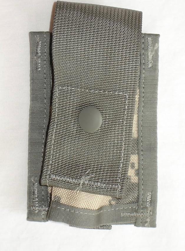 40mm Grenade pouch (Single/Double) Both types of Thump gun ammo pouches are open at the base so without modification not that useful for anything other than moscart shells. The open base may make dirt and debris ingress a more likely too. They are cheap, pretty common and often in mint condition.