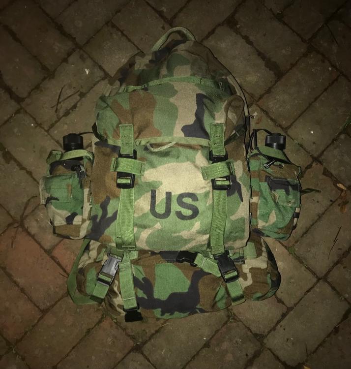 MOLLE II, pack, patrol Not including the similar later Assault pack there are at least three version of the "Pogie Bait" pack knocking around. Initial production style pack. The design takes inspiration from the IIFS/CFP-90 lid of the previous system. Layout and construction is very similar but the shape has been changed to look more like the Lowe three day Adventure pack (what Eagle copied for the 3 day assault pack) and reduced in size a little. I only have (so far) the later model but the differences summarize as: Experimental. Soft back; ITW hardware; funky woodland pattern. Original production. Soft back; National Moldings hardware; woodland & desert tri-color. Later production. Plastic frame sheet; ITW hardware; woodland, desert tri-color, UCP, OCP. *Hardware might change by run date and contractor. Zips are always YKK though. Someone tried to tell me they did them ABU Tiggercam. Can't find a reference though, perhaps aftermarket. Common features across the versions are: 1500cu (24.5L) volume. Double action zipped main compartment with fittings to install SINGARS radio pouch. Slot for back pad plus frame sheet and jump lines on later model "jumpable pack". Padded narrow shoulder straps with sternum strap, top attachment point is adjustable for width. Drag handle. ID window thing. External buckled pocket with drawcord (claymore or promask pouch) with press stud to fit bandolier. Velcro slot pocket in external pouch (either for weapon cleaning kit or mask filters). Drain grommets on both compartments, sometimes with internal cover. Female buckle to mate to main pack. Late model uses the top ones to have webbing lashing loops. Bottom tabs to fit MOLLE waist pack or lash items too. Narrow strip of pals above the ouside pocket. Small pals grids on the sides, a little bit more on the later packs. Comms/Hydration Pierson the later style. Side pals grid on jumpable pack. Canteen covers and waist pack fitted to use as a 3 day type pack. Side by side to Medium ALICE to give an idea of capacity. Venture surplus takes a look at the patrol pack, ‘Merica! https://m.youtube.com/watch?v=epLs_rNO3ZU Added for quality of beard and accent. -