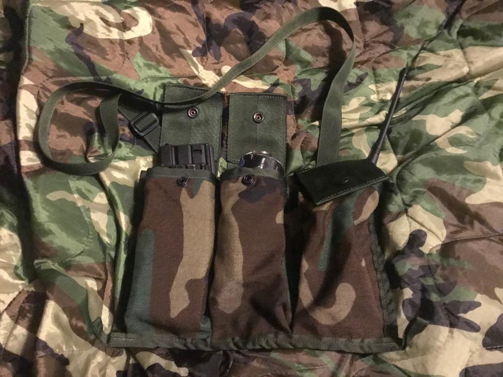 The MOLLE bandolier “It may not be the tactical gear you want. But it’s tactical gear you deserve.” The molle bandolier is a complete air soft rig. Nothing else needed. Each pocket can hold two M16 mags, a radio or smoke grenade. Job done. Each pocket has a top flap secured by a press stud. These are not fully closed so thin items like mk5’s can fall out. The shoulder strap adjusts but is sewn in. The press studs are used to install the bandolier in the claymore pouch on molle patrol and assault packs. There are two loops at the bottom edge so you can add a waist belt of bungie and have a compact hip/chest rig. The USMC are speshul and have a uniqueewee version. This has pals on the back to add crayon storage options. As it’s a grid you can add anything using MALICE clips. You could even sandwich two back to back as a grab bag. Yes, the USMC does have one piece of kit that’s better than the Army’s version. ??? -
