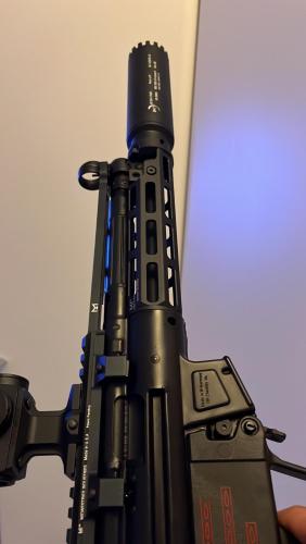 VFC/Maruyama APC9 SD *1 x mag included* Unmarked as new condition (minus threads on suppressor), never skirmished Bowmaster NPAS New Unicorn 6.03 barrel New Unicorn 60 hop rubber Full B&T trademarks Modular length suppressor Magpul moe m lok foregrip GM 416a5 grip 1 x leak free mag Unknown brand steel ironsights note the suppressor’s threads are damaged but still attach to the outer hop unit securely with tension, due to the original owner over tightening the suppressor to the hop unit - he was able to remove the suppressor by drilling through the threads but destroying the hop unit. I have replaced the whole hop unit and secured it with a 14mm ccw extension which the suppressor now attaches to. This does not affect function in anyway but buyer must be aware. Furthermore any 14mm suppressor will attach directly to the hop unit should the buyer wish to swap out the damaged one Positive note, the ambi bolt hold/release works perfectly from both sides (most of these usually only engage on the left)