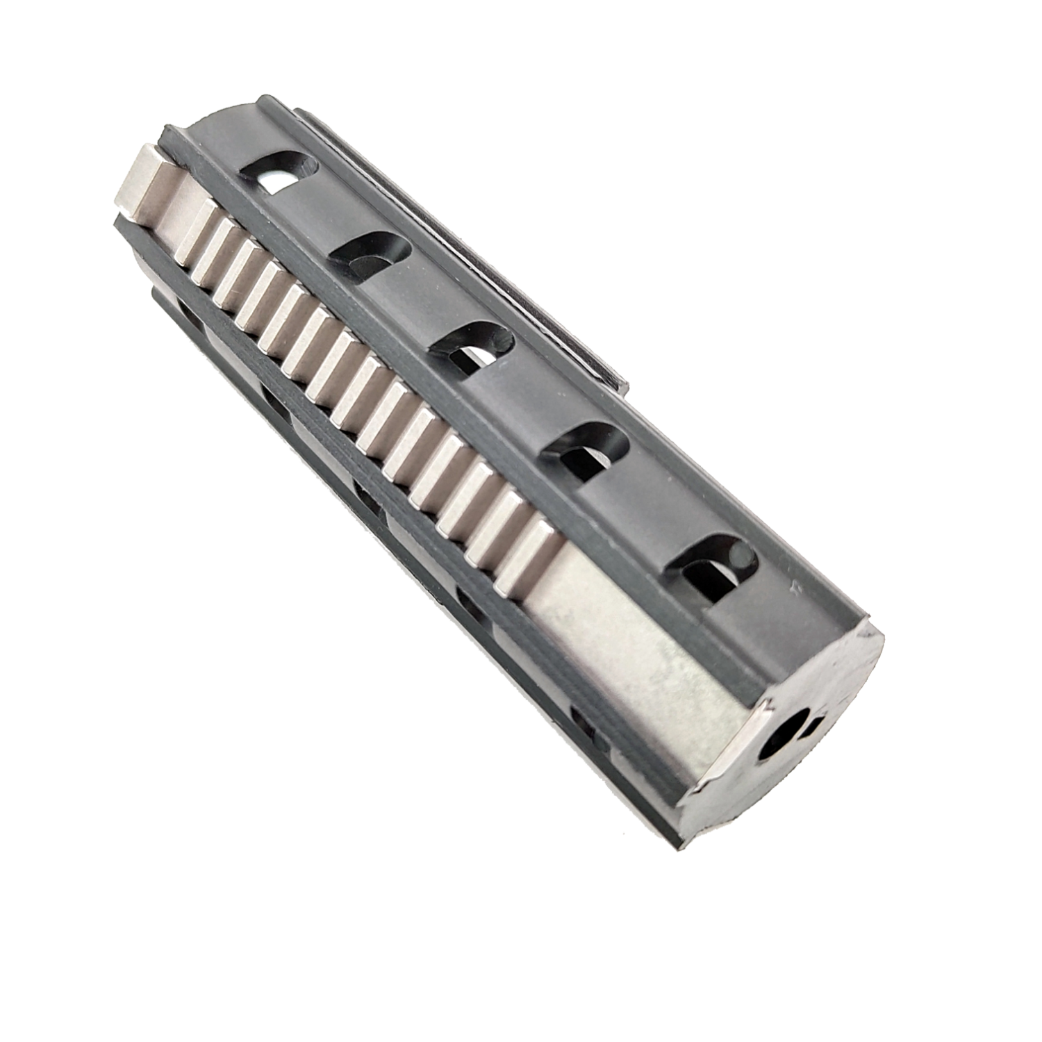 B、Structure of 480 Motor Bottom cover There are two common materials for the bottom cover, one is plastic and the other is metal. The two bases have their own advantages and disadvantages. The plastic bottom cover has low cost and good insulation, and it is not easy to cause a short circuit accident when the power cord is broken or loosened. However, the heat resistance limit of plastic is not as good as that of metal, At high temperature (over 250°C), it may deform and cause failure. But in fact, it is difficult to achieve such a high temperature in normal use. If there is such a high temperature, the motor itself will almost be scrapped, so this is not a very direct disadvantage at all. The CNC metal bottom cover is just the opposite. High cost and poor insulation (Most factories will spray insulating paint on the surface, but the insulating layer may be worn during disassembly and assembly, so be sure to insulate the power cord just in case), high temperature resistance, and help to dissipate heat. Motor shell The casings are basically made of metal, and some will have heat dissipation holes. However, since the motor is installed in the handle, both sides are sealed, not open space, and there is not enough heat dissipation space. Therefore, opening the heat dissipation holes has limited improvement in the heat dissipation effect. Fixing spring Keep the motor in a stable longitudinal position in the grip or motor frame. Fixing the position of the motor relies on the force on both sides of the screw of the grip bottom cover and the spring, they clamp the motor in a fixed position to achieve the effect of stable gear engagement. Motor gear The motor gear is used to engage the bevel gear of the gearbox to drive the action in the gearbox. Generally, there are two kinds of materials: nylon and metal. Metal is divided into three types: powder die casting, injection, and steel cutting. Note that the motor gear and the bevel gear must be made of the same material, otherwise the nylon gear will be aggravated and damaged. Shaft sleeve The shaft sleeve extends into the motor hole of the handle and the gearbox to fix the lateral position of the motor. If the lateral position is not fixed, the gears will be mis-engaged, which will aggravate the wear of the gears and cause damage. A good shaft sleeve and motor shaft will be fixed with bearings for better stability. Electrodes There are positive and negative electrodes on the motor tail cover, which are used to connect the power cord. Carbon brush fixing spring Keep the carbon brush in tight contact with the rotor commutator. Carbon brush There are two carbon brushes, which are respectively connected to the positive and negative electrodes, and the inner side is in contact with the rotor commutator to supply power to the rotor coil. Note that carbon brushes are consumables. After friction loss, they will not be able to supply power to the motor, and new carbon brushes need to be replaced. (Some friends find that the motor can’t work after using it for a period of time, and they think that the motor is damaged and replace the motor. In fact, check the wear of the carbon brushes at this time. It is very likely that the carbon brushes are worn out. Just replace a pair of carbon brushes. Repair the motor) carbon brushes commonly include graphite carbon brushes, copper-containing carbon brushes, (there is also a silver-containing carbon brush, the cost is high, 480 motors are generally not used). Graphite carbon brushes are relatively soft, not wear-resistant, and wear out very quickly and need to be replaced frequently. Copper-containing carbon brushes are divided into high-copper carbon brushes and semi-copper carbon brushes according to the copper content. The higher the copper content, the better the wear resistance and life, and the higher the price. However, too high copper content will lead to high hardness of the carbon brushes and aggravate the wear of the rotor commutator, so I prefer to use semi-copper carbon brushes to achieve a balance of life of each part. Rotor structure Rotating shaft Connectthe motor teeth, the heads are all D-shaped shafts Iron core Used to wind coils, generally made of silicon steel sheets. Coil Use enameled wire for winding. The thicker the wire diameter, the larger the current and the bigger the power. By the way, here is an explanation of the TPA and motor performance mentioned above. Under the same conditions, the larger the number of coils (TPA), the greater the torque and the lower the speed. The smaller the number of coils (TPA), the smaller the torque and the higher the speed. The upper performance of the gearbox is that high TPA can pull larger springs, but there will be lower RPS, and low TPA can obtain higher RPS, but cannot pull too high springs. At the same time, due to space constraints, if you want to get a higher TPA, you need to use a thinner wire, the current will be smaller, and the power of the motor will be lower, so the heat of the high-TPA motor will be relatively lower. We cannot blindly pursue high TPA or low TPA, we must choose the appropriate TPA according to the gears and springs (I recommend referring to the no-load speed of the motor to match the gearbox to obtain ideal performance, later I will talk about how to calculate and match) Commutator Contact with the carbon brush to supply power to the coil, which is a wear part, and can continue to be used by replacing the rotor after reaching the service life. However, the life of the commutator is usually much longer than that of the carbon brush, so the commutator can continue to work after the carbon brush is replaced several times (depending on the type of carbon brush). Base fixing shaft Fixed in the bottom cover to keep the motor axially stable. A good motor will use bearings to hold it in place to avoid wear and tear over long periods of time. Wind blade Some motors will install a plastic wind blade at the end of the iron core, whic