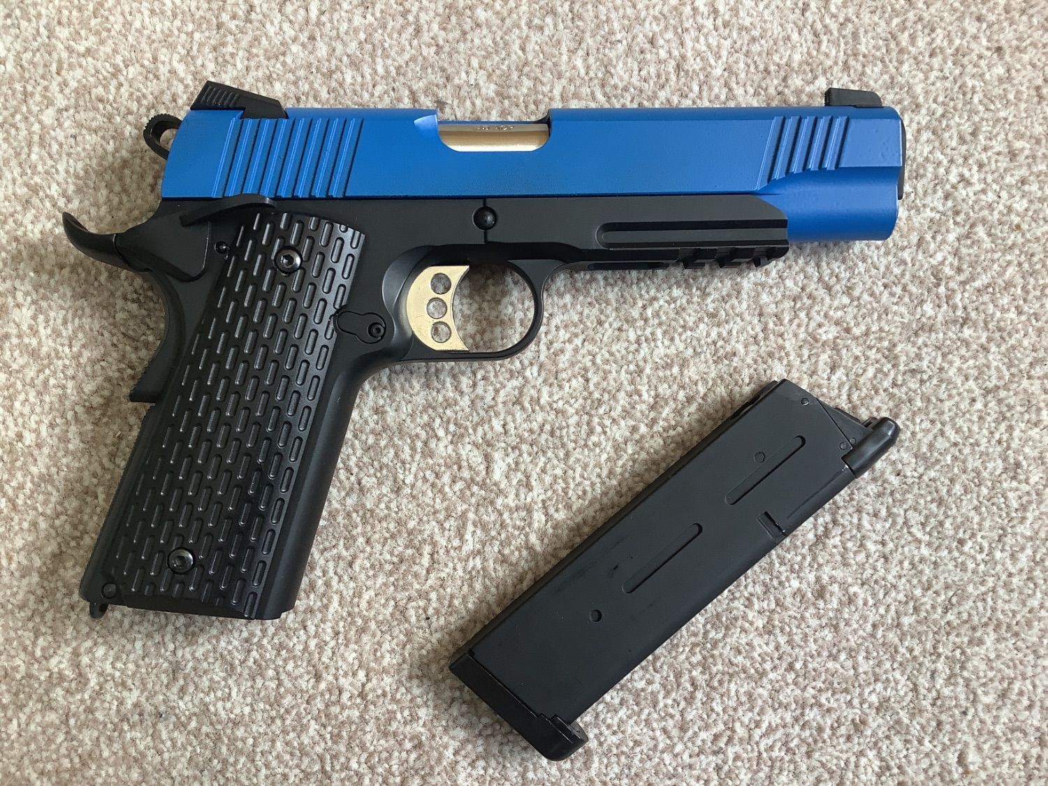 On my limited budget, I have bought a second hand Army R28 in two tone blue, hoping the cheap price won’t mean cheap QC. Only sign of wear is a tiny chip on the plastic grip. I could always upgrade it when I raise my budget, it’s TM compatible. -