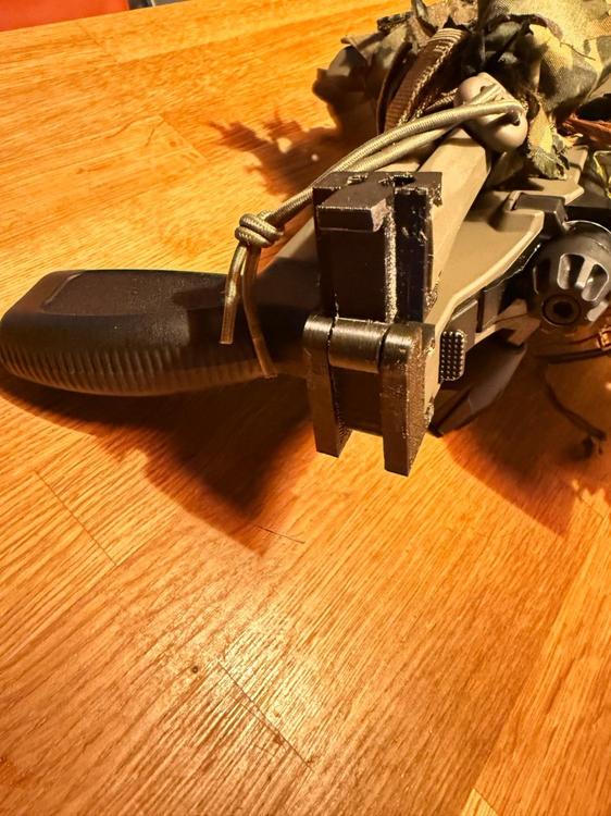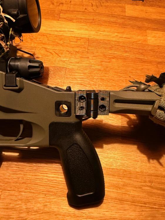 10. This is still work in progress but I’ve designed a print in place foldable stock adaptor for my TAC41 LS. I still have to improve the lock in place as it is currently too easy to fold the stock accidentally. Any suggestion for a good locking mechanism? Currently it is done with small protrusion that locks into a little groove.