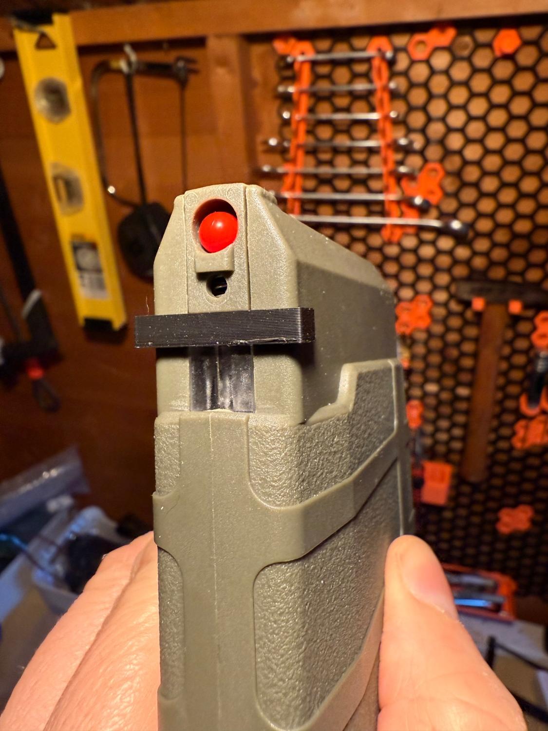 1. As probably anyone with a TAC 41 will have experienced the magazine of the TAC 41 likes to spill its content too easily, the slightest touch on the release tab and all the bbs are on the ground or in the pouch. As the mag is behaving like a life granate I thought I treat it like one and add a safety pin ? So I quickly designed one and printed it. It prints in 2 min so you can print dozens of it and don’t worry if you lose them. With this pin in you don‘t have to worry that the mag will empty itself when you insert or remove it from your mag pouch. You still have to be careful when inserting it into the rile though. You can download the 3D model here: TAC 41 Safety Pin on Cults3D