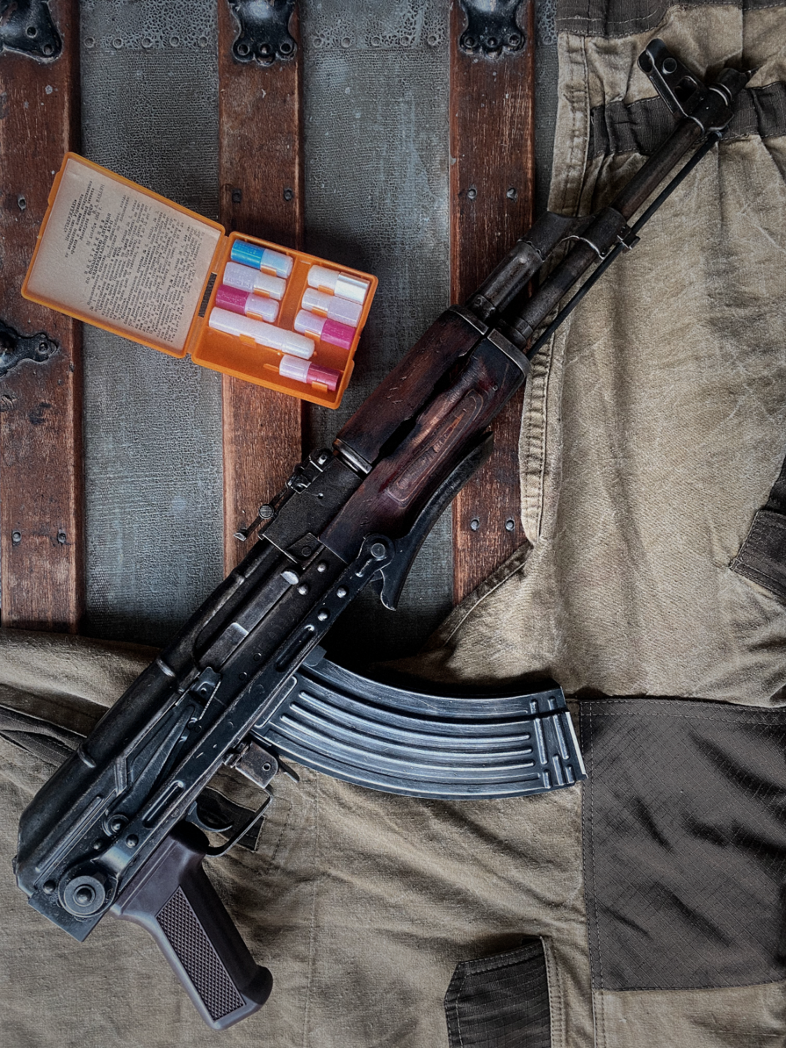 8. My Winchester 1873 is complete, for now... the question is what sidearm should I pair with it? I'm leaning towards a Tanaka SAA or Python... pic of the matching loadout / attire at the last western filmsim! A more modern offering now.... my weathered full steel AKMS. Hoping to go down a Tarkov scav or Cold war Poland route in terms of kit. The let down on this otherwise realistic piece is the grip... anyone know a spot to buy a bakelite or wood grip for AEG AKs?