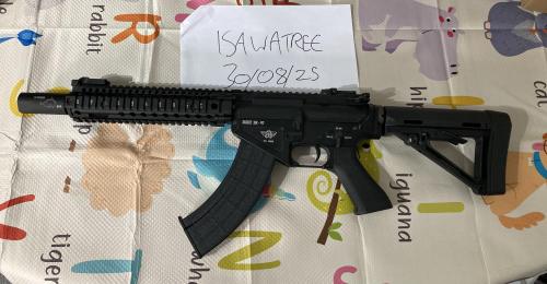 Based of a bolt mutant I am selling my custom build. zci gearbox with a perun hybrid v2 13.5 mk16 hand guard with trades surefire warden clone with trades pts pistol grip in OD fits and feeds fine on pts ak mags, tried CYMA and they were fine. shoots 1j with hop set for .36s within limits on a .32 but I’d drop the spring for any lighter but. looking for £140 posted Firing vid attached140.00 GBP