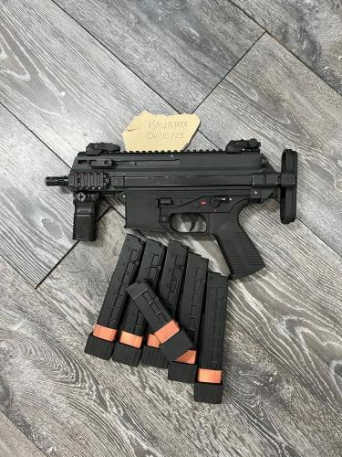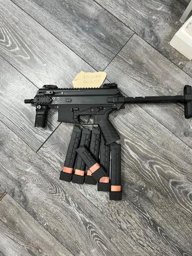 ARROW ARMS APC9 recently serviced with shs piston/pistonhead shs cylinder head asg ultimate cylinder asg ultimate bearings zci inner barrel 5x 100 round mid caps 1x 65 round mid cap 14mm thread adapter grip shoots at 1j with hop for .32 looking for £250 posted ono firing vid below250.00 GBP